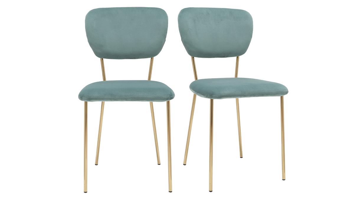 Les assises LEPIDUS sont un concentré de tendance et de raffinement. Le velours utilisé pour recouvrir le siège et le dossier est un matériau dans l'air du temps qui a l'avantage d'apporter noblesse et chaleur à un intérieur. L'aspect luxueux du velours est accentué par une structure fine en métal doré. La couleur or permet de donner de l'éclat à son séjour tout en mettant en valeur le coloris céladon du siège.