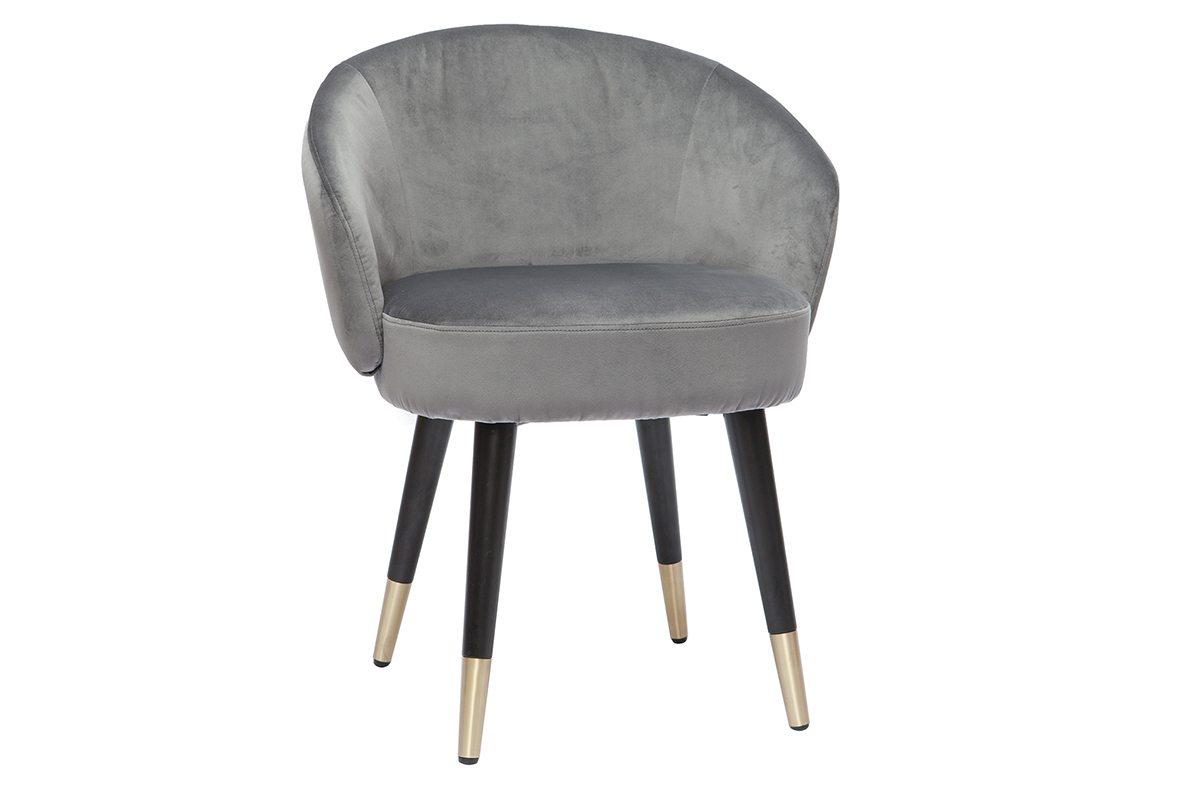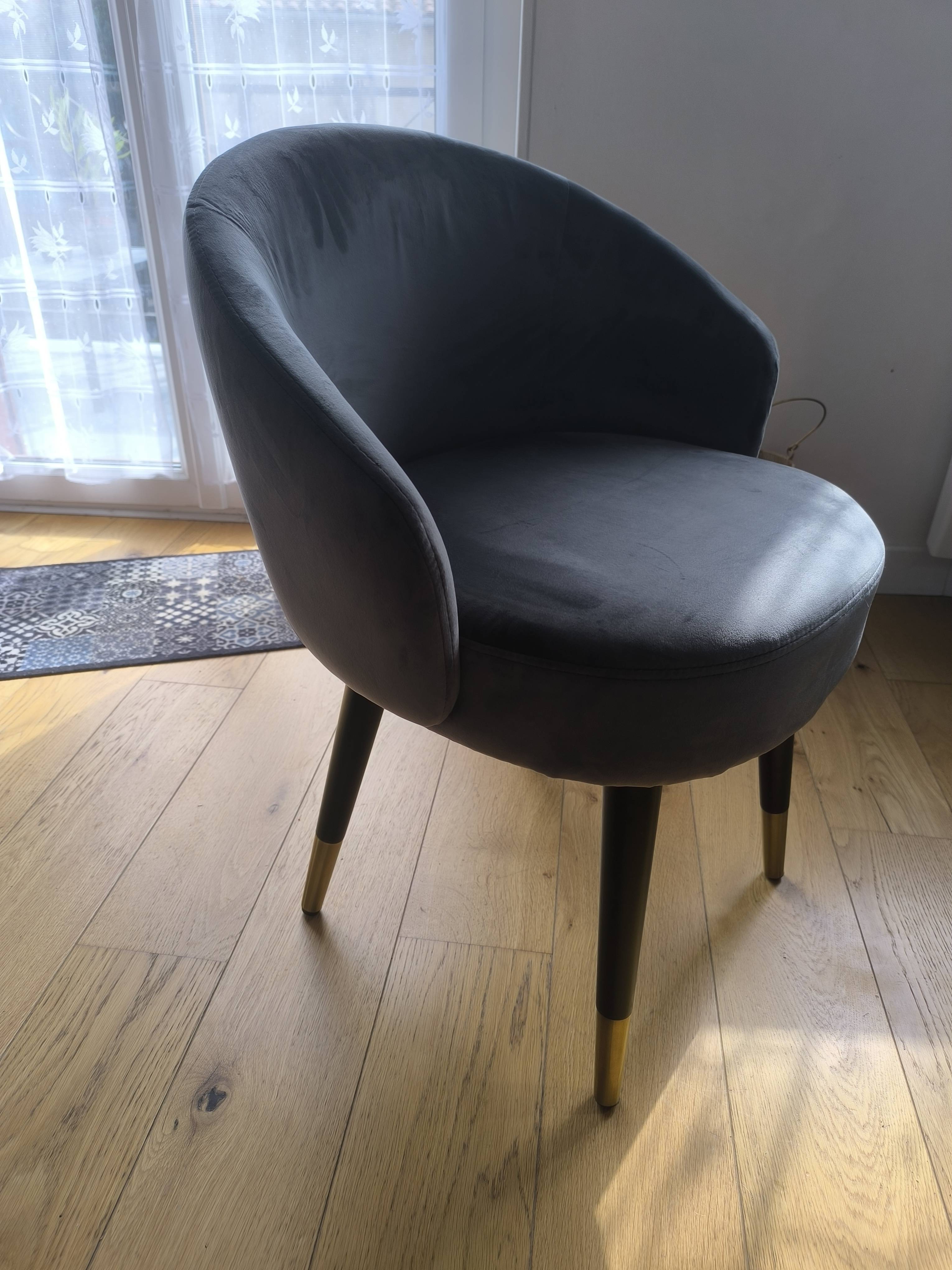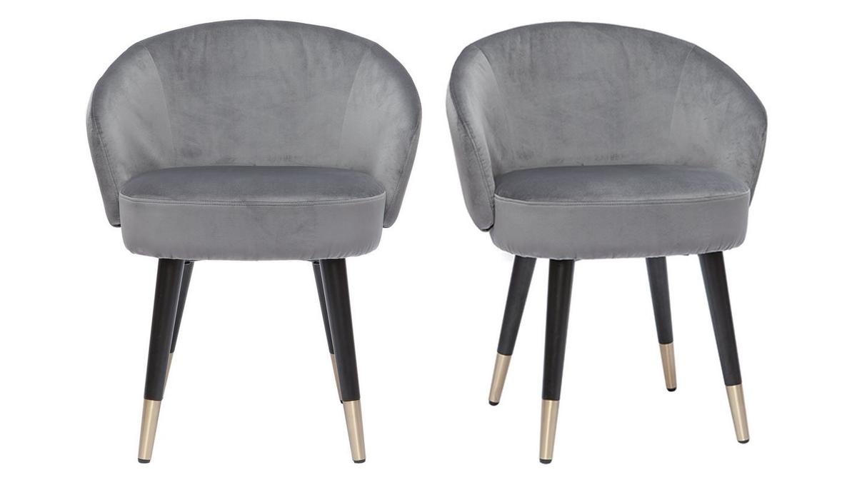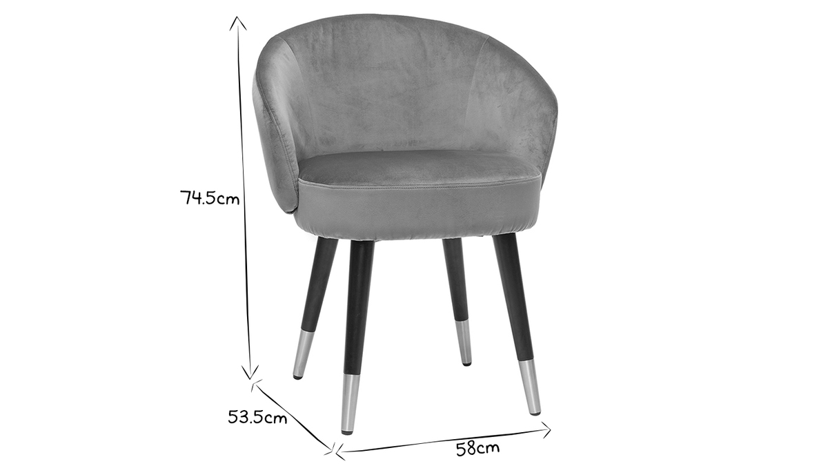 Le contraste entre leurs assises au doux revêtement en velours gris, et leurs piètements en hévéa massif teinté noir, apportera douceur et élégance à votre intérieur.