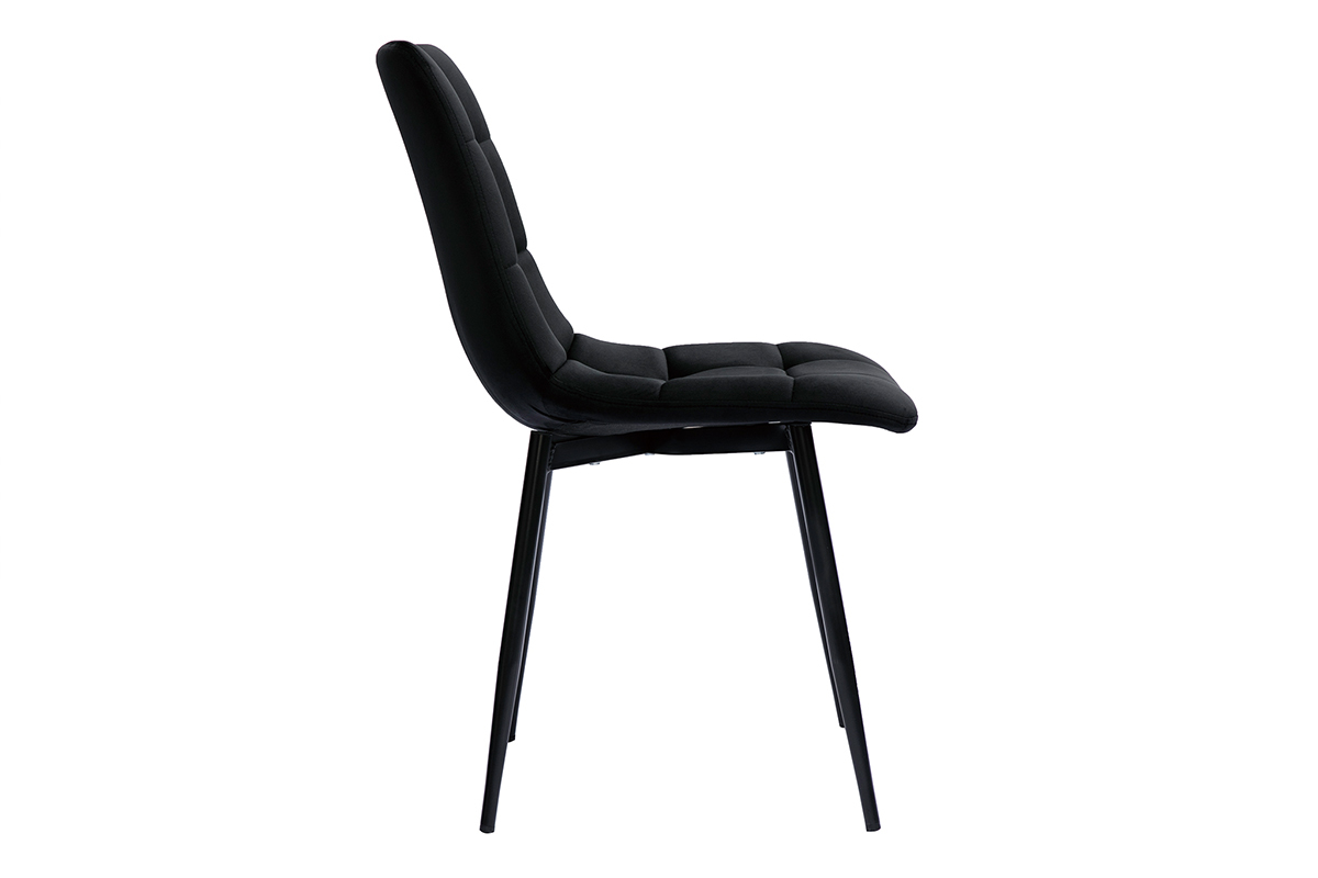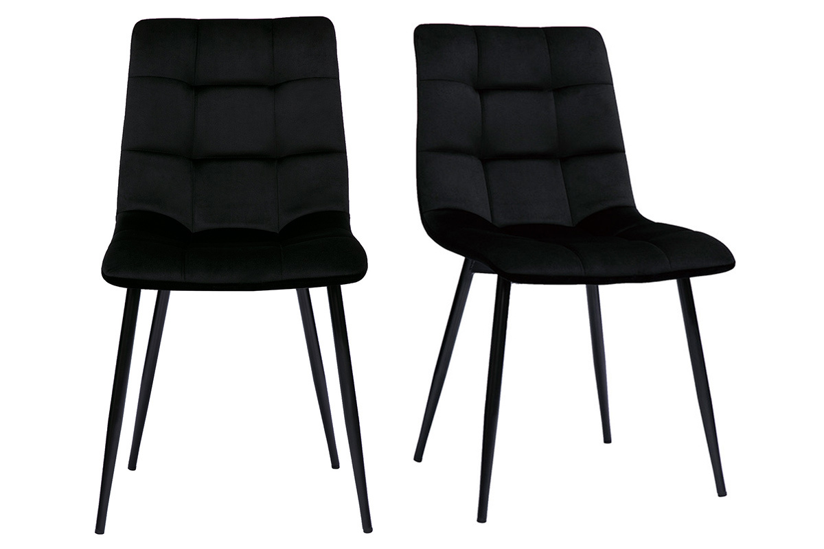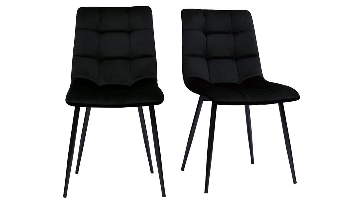 En associant la douceur d'un tissu velours (100% polyester) à l'élégance d'un capitonnage, ces chaises de salle à manger noires sublimeront un séjour ou une cuisine à l'atmosphère chic et feutrée. Avec leur joli jeu de surpiqûres, elles seront tout aussi indiquées dans un intérieur plus contemporain.