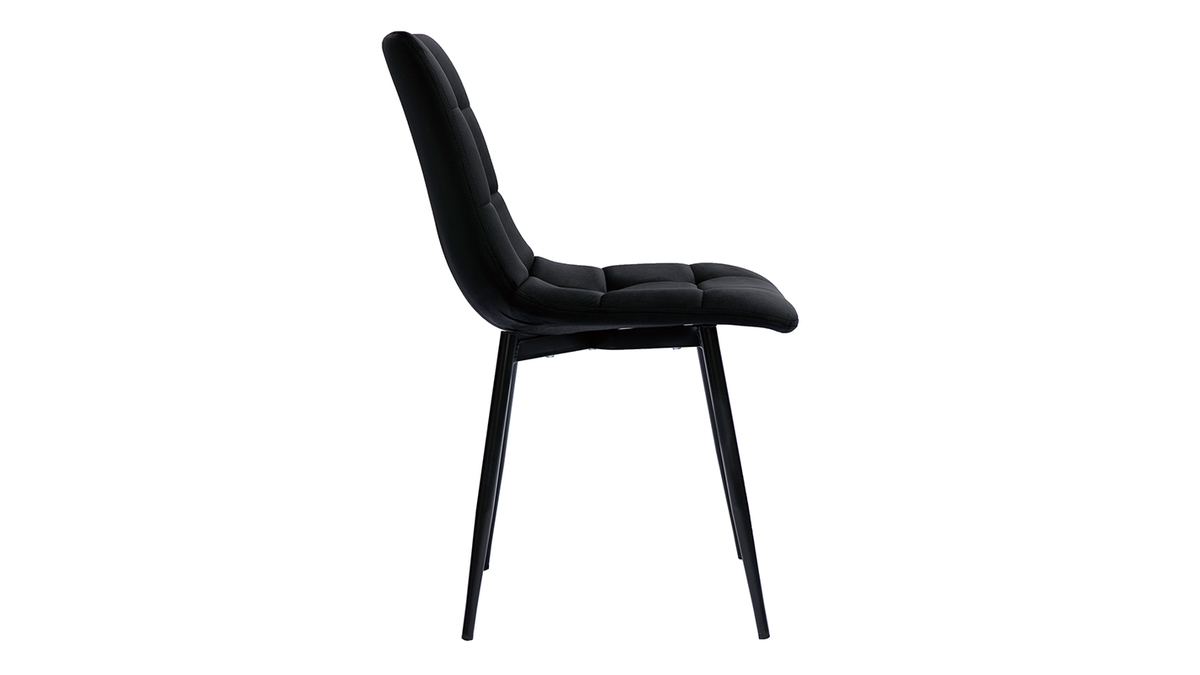 Avec ces chaises design misez aussi sur le confort d'assises enveloppantes. Leur dossier haut légèrement incurvé assure un très bon maintien et leur assise rembourrée (densité 25 kg/m3) procure un accueil souple et moelleux. Les pieds fuselés en métal noir apportent de la légèreté à la silhouette et s'accordent avec tous les styles de tables à manger.