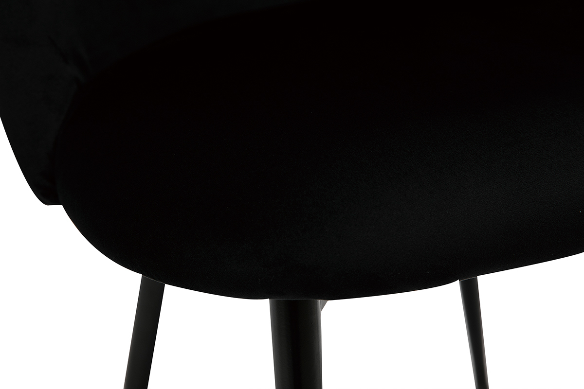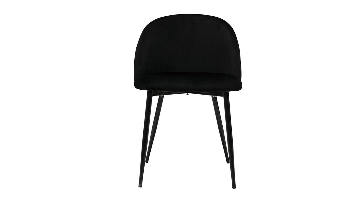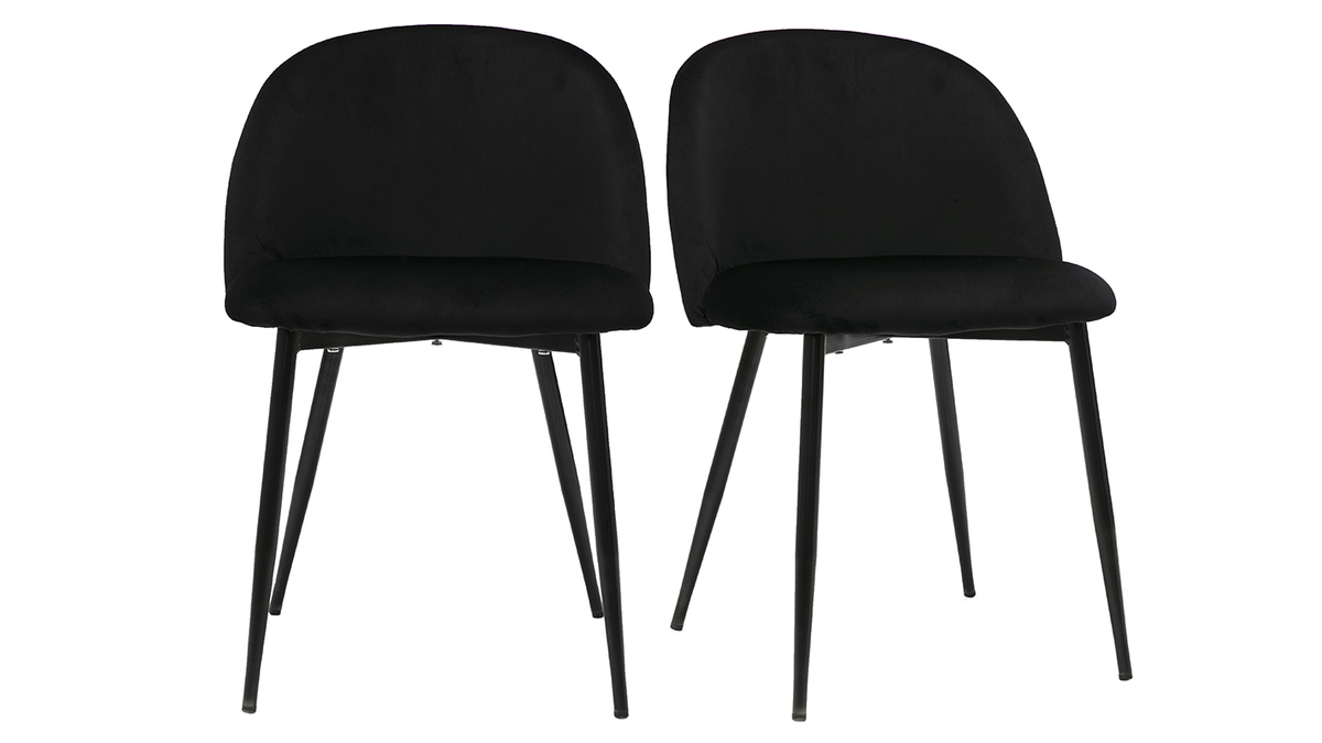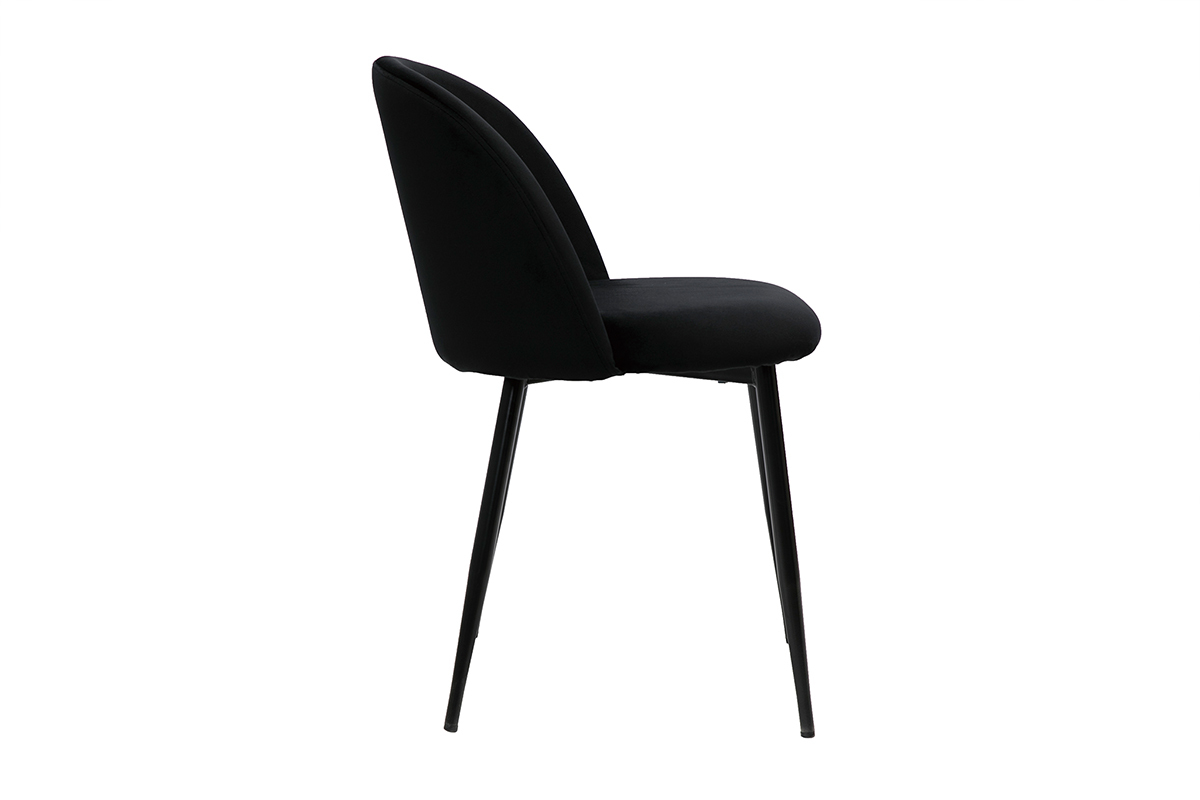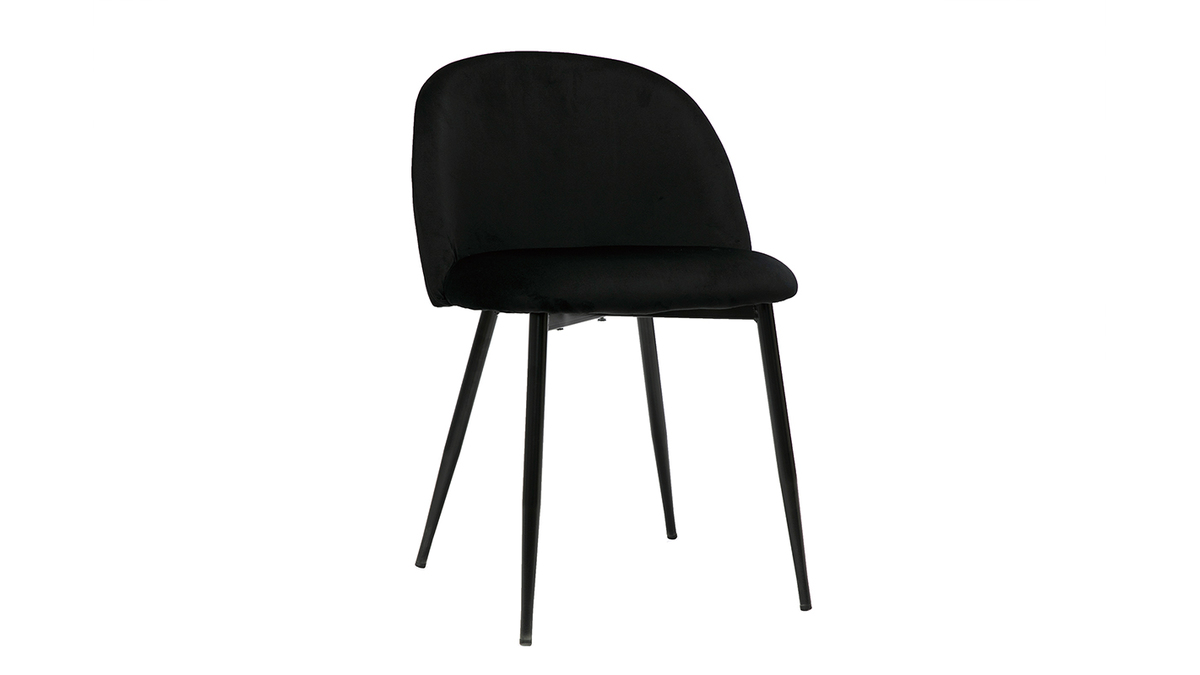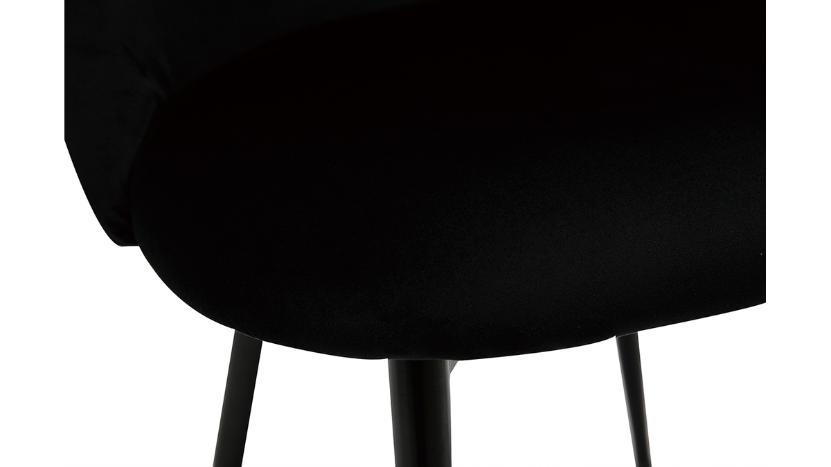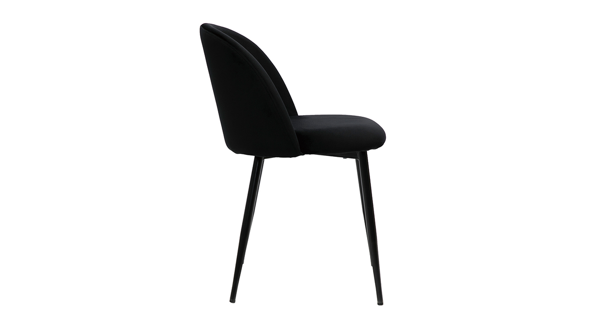 Revêtement en velours noir, pieds en métal de la même teinte, lignes arrondies : les chaises CELESTE reflètent tout ce qui fait le charme du style contemporain.