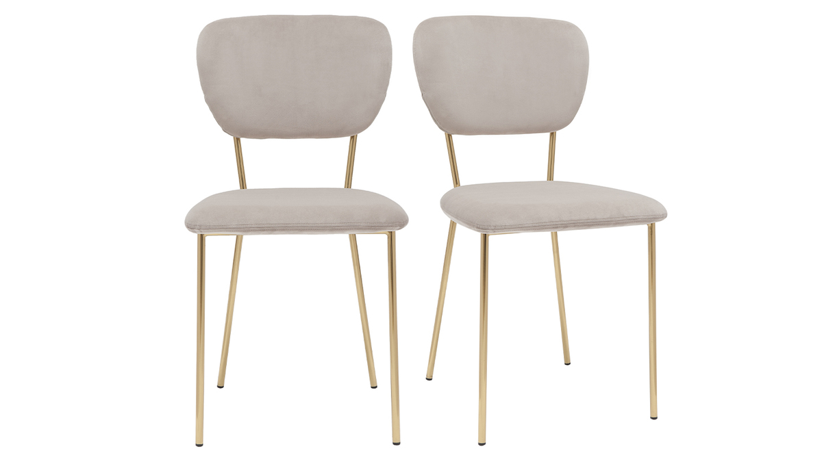 Les assises taupe et or LEPIDUS sont un concentré de tendance et de raffinement. Le velours utilisé pour recouvrir le siège et le dossier est un matériau dans l'air du temps qui a l'avantage d'apporter noblesse et chaleur à un intérieur. L'aspect luxueux du velours est accentué par une structure fine en métal doré. La couleur or permet de donner de l'éclat à son séjour tout en mettant en valeur le coloris taupe du siège.