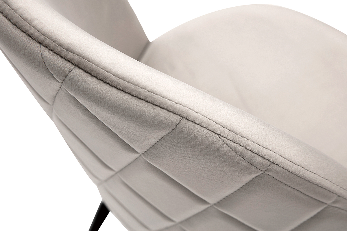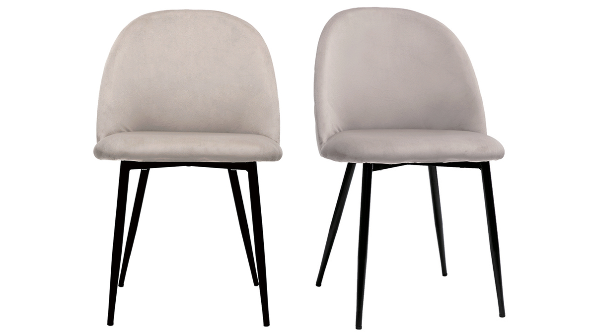 Habillées d'un sublime revêtement en tissu velours taupe, les chaises JOVI vont apporter LA touche d'élégance à votre salle à manger. Elles associent cette matière ultra chic à une silhouette raffinée travaillée tout en courbes. Avec leurs pieds fuselés en métal noir, elles offrent une belle légèreté visuelle pile dans l'air du temps.