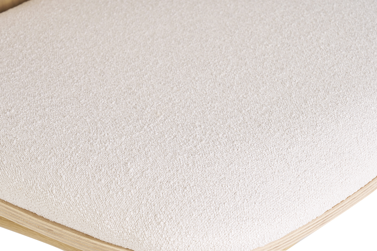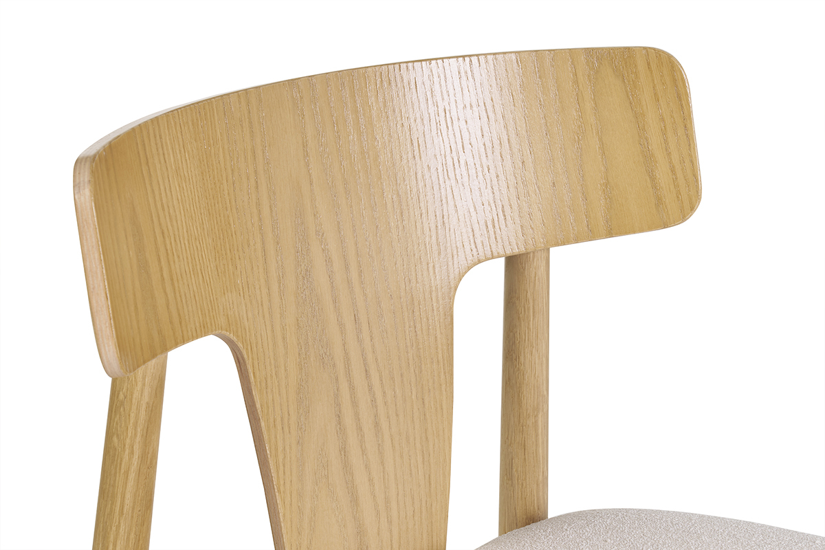 À la fois sculpturales et fonctionnelles, ces chaises design blanches et bois clair sont composées d'une structure en chêne massif et d'un siège revêtu d'un tissu bouclette (100% polyester). Robustes et confortables - pour sceller la promesse de nombreuses heures de partage et de convivialité bien installé - ces chaises à l'assise ferme sont rembourrées d'une mousse densité 35 kg /m³.