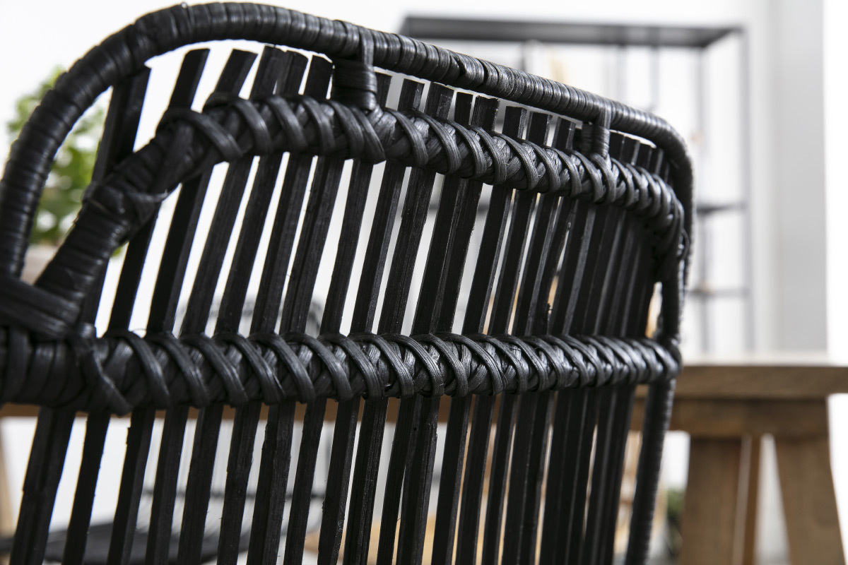 Ces chaises en rotin noir sont des assises de caractère réalisées artisanalement. Leurs lignes épurées en font des pièces d'une grande légèreté visuelle qui s'adaptent à tous les intérieurs. La tendance est au rotin ! Une matière qui s'intègre très facilement aux différentes pièces de la maison et apporte un style exotique qu'on adore. Avec leur authentique structure en rotin peinte en noir et leurs jolies courbes, ces chaises noires sont idéales pour apporter élégance et charme à l'espace repas. Que votre intérieur soit vintage ou bohème, ces chaises en rotin et métal noir trouveront toujours leur place !