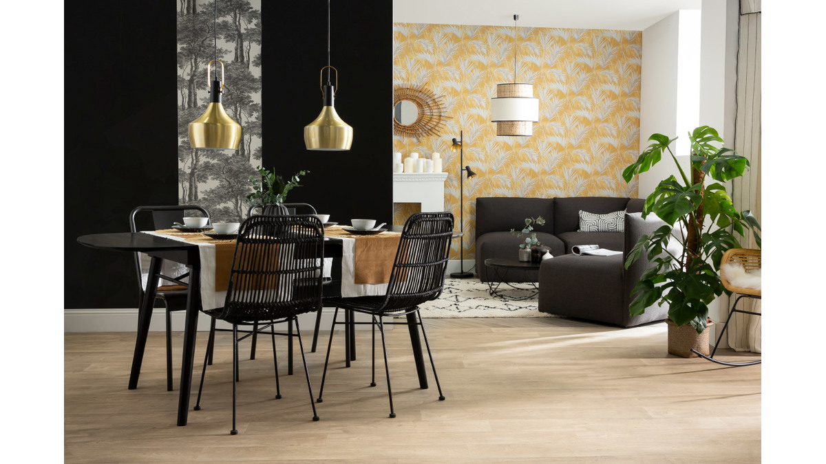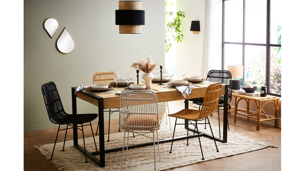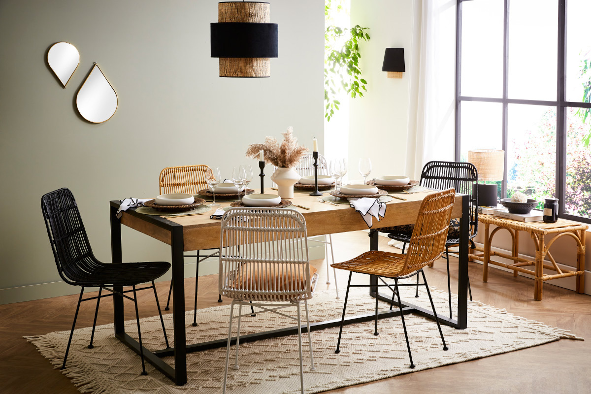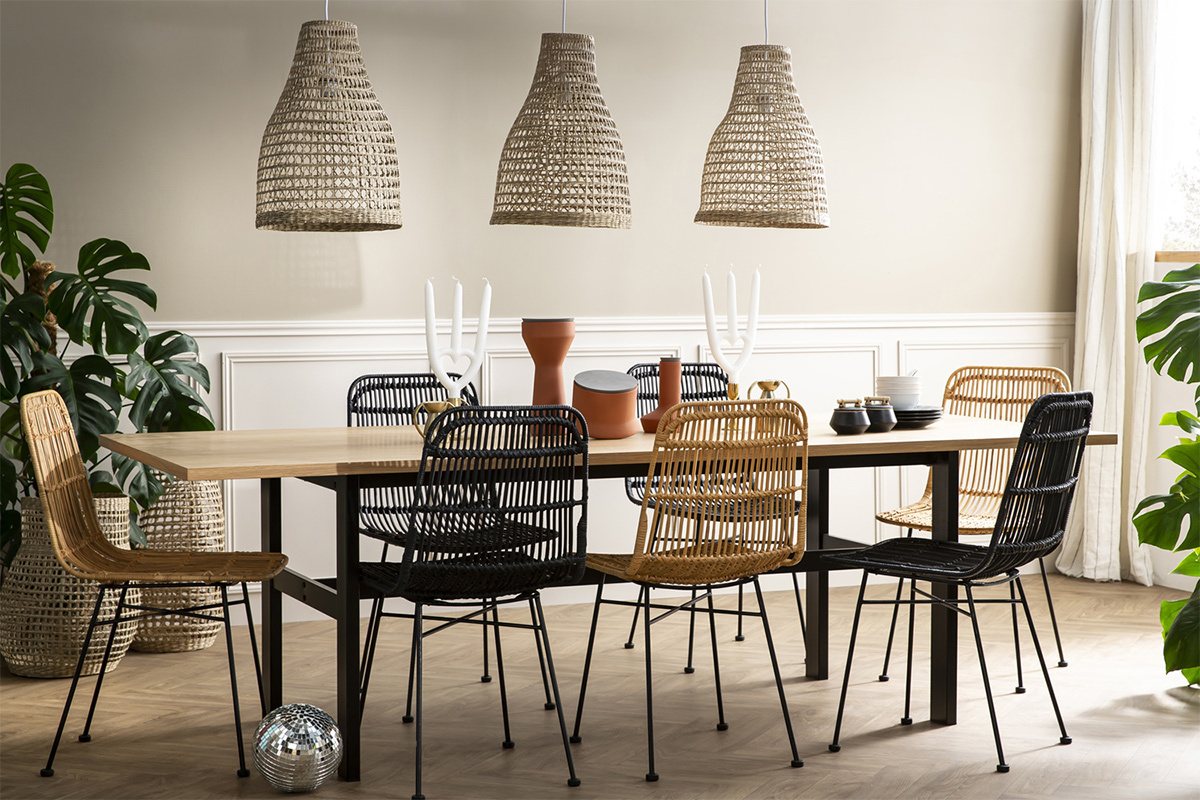 Pour une atmosphère conviviale et chaleureuse, disposez ces chaises en rotin design autour d'une table en bois.