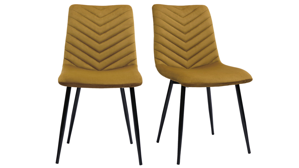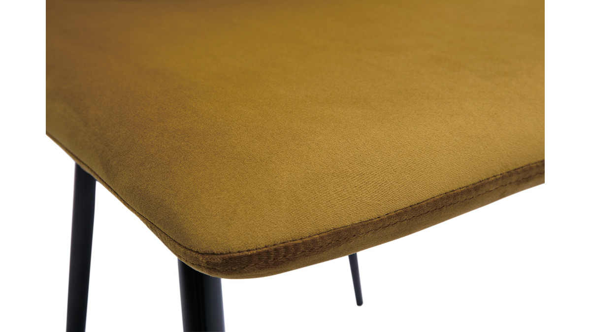 Actuelles et fonctionnelles de par leurs formes et couleurs, ces chaises de salle à manger cochent tous les critères pour organiser des tablées trendy et tout confort ! Habillées de velours et supportées par un piètement fuselé noir, ces chaises en tissu s'affranchissent des codes du " tout vintage " pour laisser place à des silhouettes sobres et modernes. À la fois subtil et audacieux, le délicat revêtement au toucher doux se pâre d'un vibrant coloris bronze, de quoi apporter une note chaleureuse à une pièce de vie conviviale. Détail de taille : les surpiqûres donnent un effet voluptueux et original à l'ensemble. Dans l'air du temps, ces chaises design camperont avec fière allure dans une ambiance rétro chic ou contemporaine.