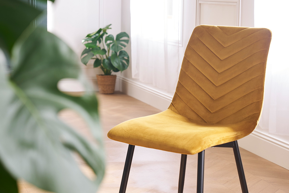 Bien ancrées dans le sol grâce à leurs quatre solides pieds en métal, rembourrées d'une mousse densité 25 kg/m³, ces confortables chaises présentent un accueillant siège formé d'une pièce par un dossier légèrement galbé et une assise incurvée. Installez-vous autour d'un café ou d'un bon repas pour manger, télétravailler ou discuter entre amis, et laissez les PUMPKIN s'occuper de votre bien-être !