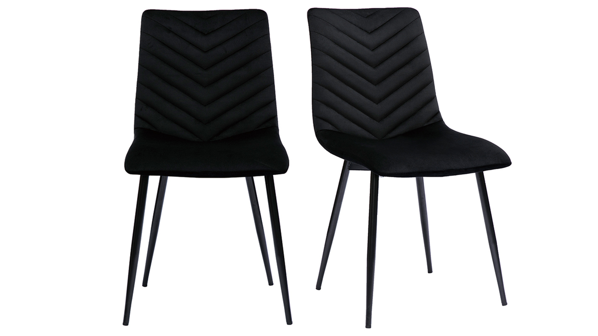 Actuelles et fonctionnelles de par leurs formes et couleurs, ces chaises de salle à manger cochent tous les critères pour organiser des tablées trendy et tout confort !Habillées de velours et supportées par un piètement fuselé noir, ces chaises en tissu s'affranchissent des codes du "tout vintage" pour laisser place à des silhouettes sobres et modernes. À la fois subtil et audacieux, le délicat revêtement au toucher doux se pâre d'un élégant coloris noir, de quoi apporter une touche trendy à une pièce de vie conviviale. Détail de taille : les surpiqûres donnent un effet voluptueux et original à l'ensemble. Dans l'air du temps, ces chaises design camperont avec fière allure dans une ambiance rétro chic ou contemporaine.
