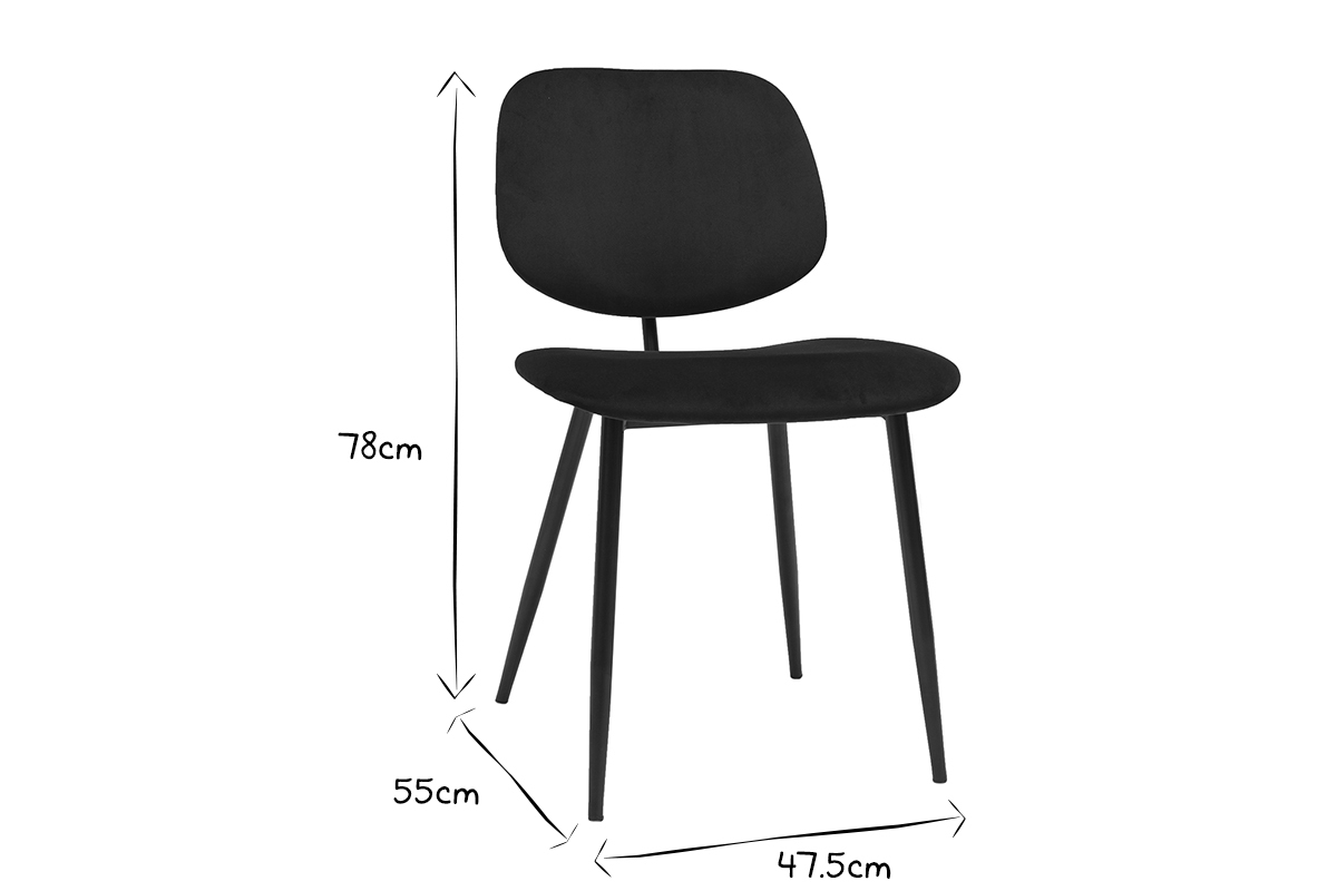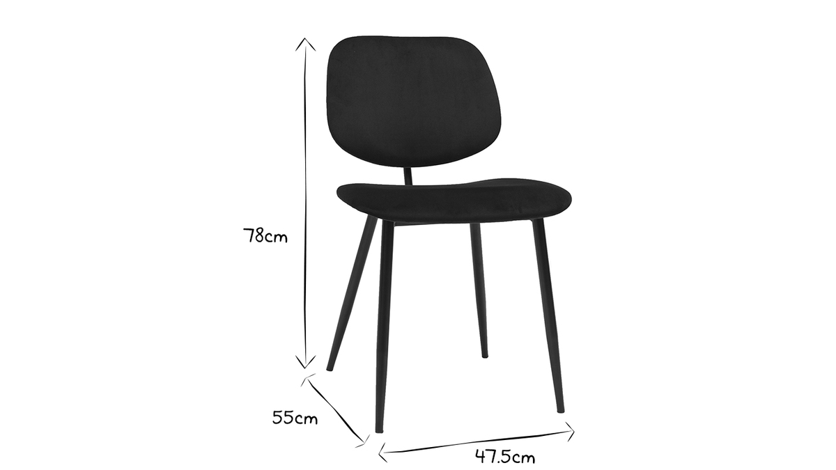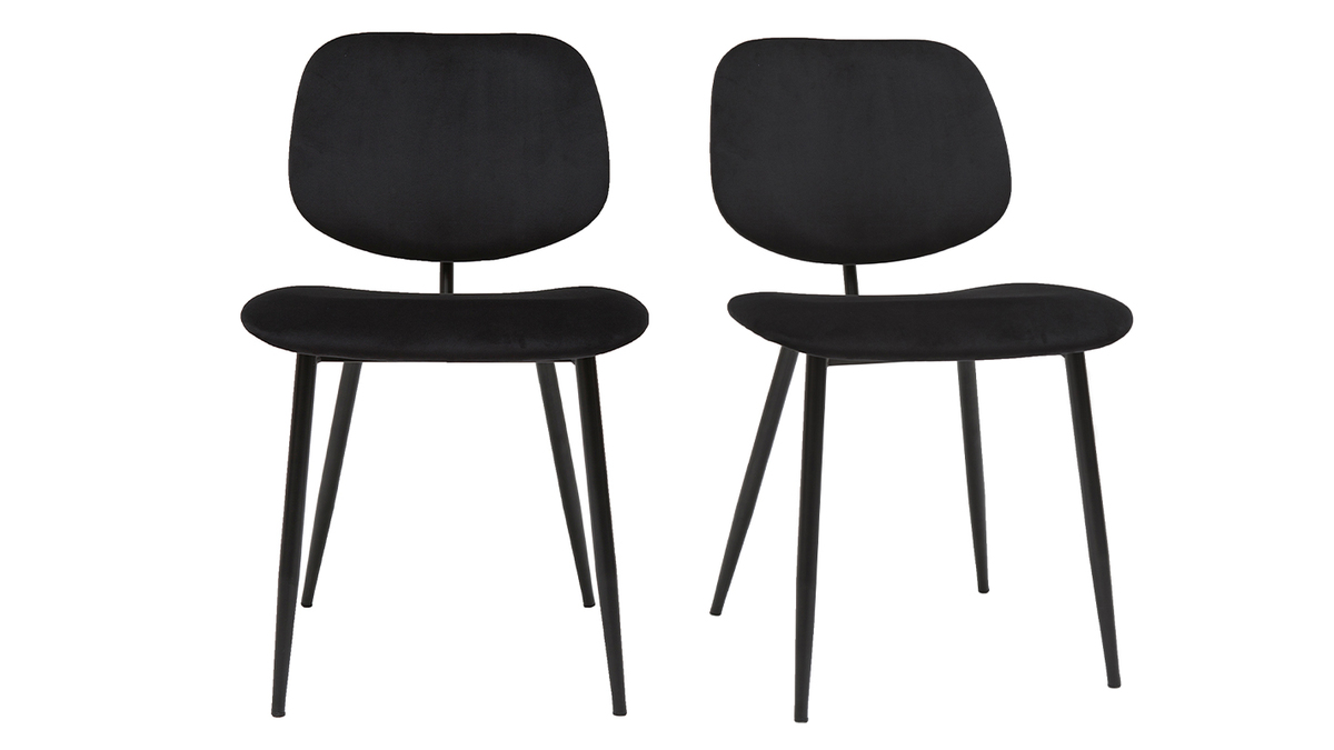 Avec leur silhouette élancée et leurs courbes généreuses, ces chaises offrent une esthétique douce et minimaliste. Elles vont à l'essentiel pour un rendu chic et tendance. Ces sièges en velours noir et métal noir au rendu élégant et monochrome seront du bel effet dans un intérieur à la décoration contemporaine. La silhouette légère de ces chaises noires habillera l'espace repas d'un style fin et délicat.
