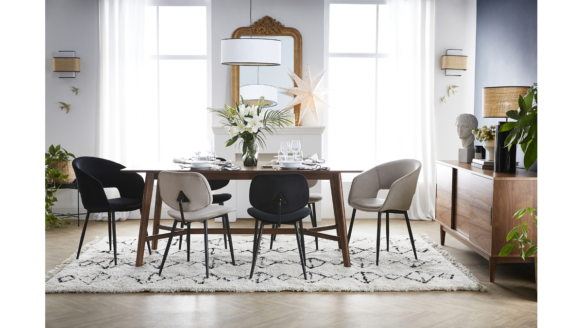 Pour profiter d'instants conviviaux confortablement installés, ces chaises design sont équipées d'un bon dossier et d'une assise incurvée. L'alliance de la robustesse du métal et de glamour d'un revêtement en velours au toucher agréable donne un ensemble parfait pour embellir une salle à manger avec charme. Associées à une table à manger en bois, elles feront du coin repas un espace chaleureux où il fait bon se retrouver.