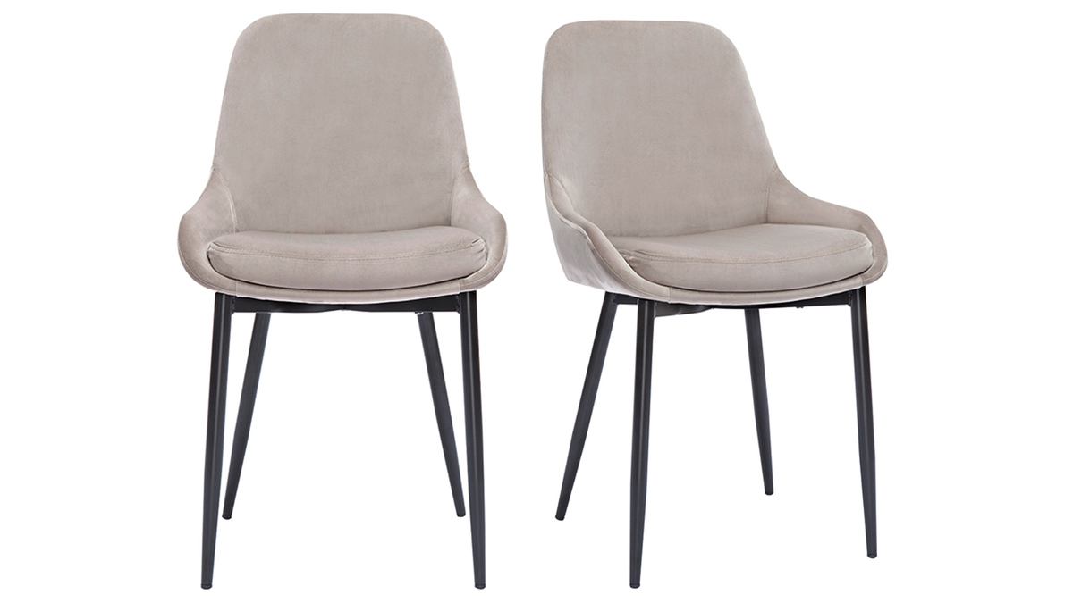 Le velours taupe et le piètement fin en métal assortis pour un total look chic et sobre, donnent à ces chaises un style délicat et raffiné. Le revêtement en tissu velours au toucher très agréable est idéal pour une salle à manger alliant charme et douceur. Matériaux tendances, coloris intemporel, formes tout en courbes...Tous les ingrédients sont réunis pour que ces chaise de salle à manger habillent d'une élégance intemporelle votre coin repas.
