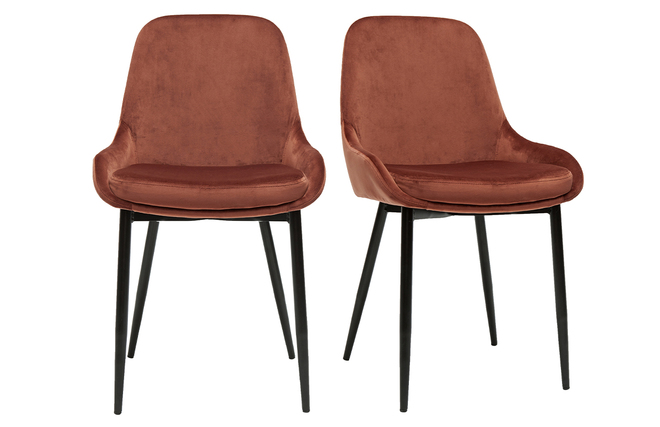 Le mélange entre une assise généreuse en tissu velours tomette et un piètement fin en métal noir donne à ce modèle de chaises rouges un style délicat. Le revêtement en velours, grâce à son aspect unique, est idéal pour un espace repas chaleureux et convivial. Le matériau choisi et la forme tout en courbes du modèle HOLO rappellent les assises vintage tout en apportant une touche de douceur à notre intérieur.