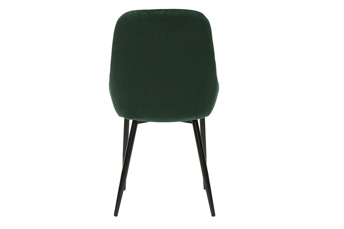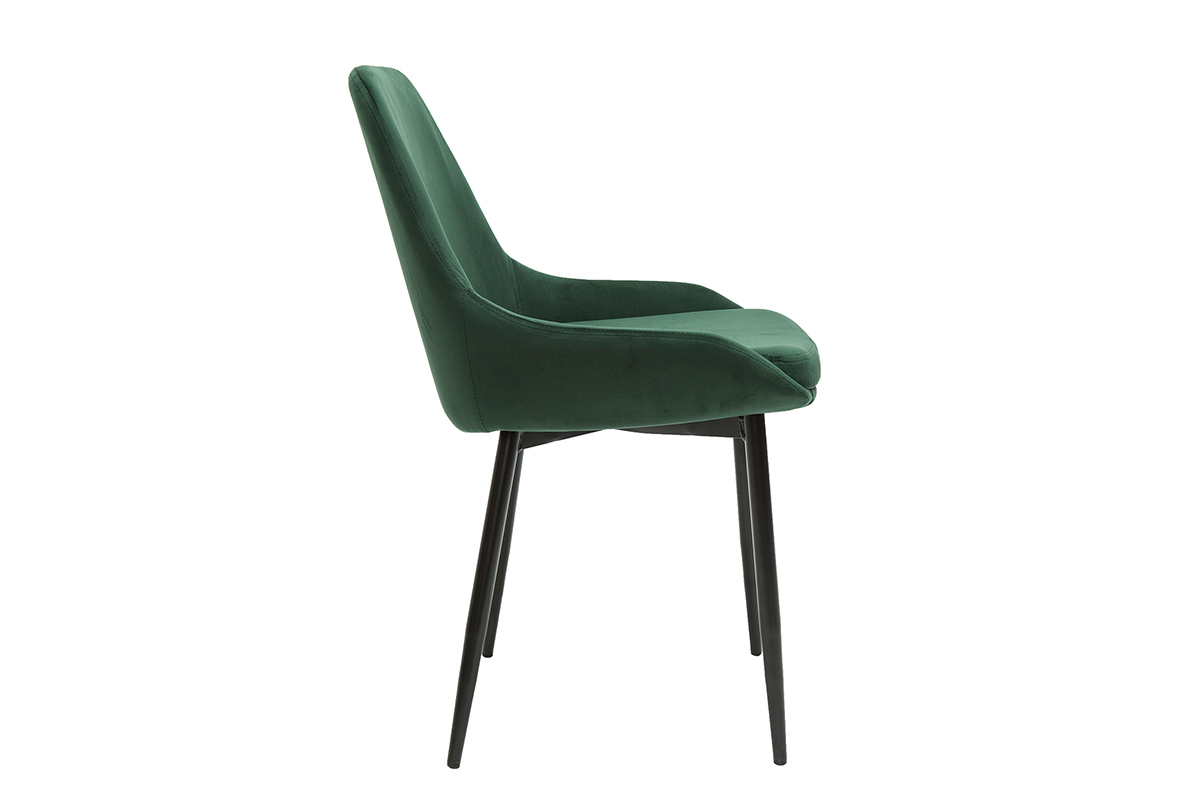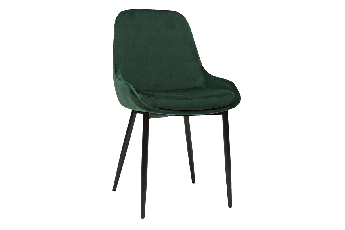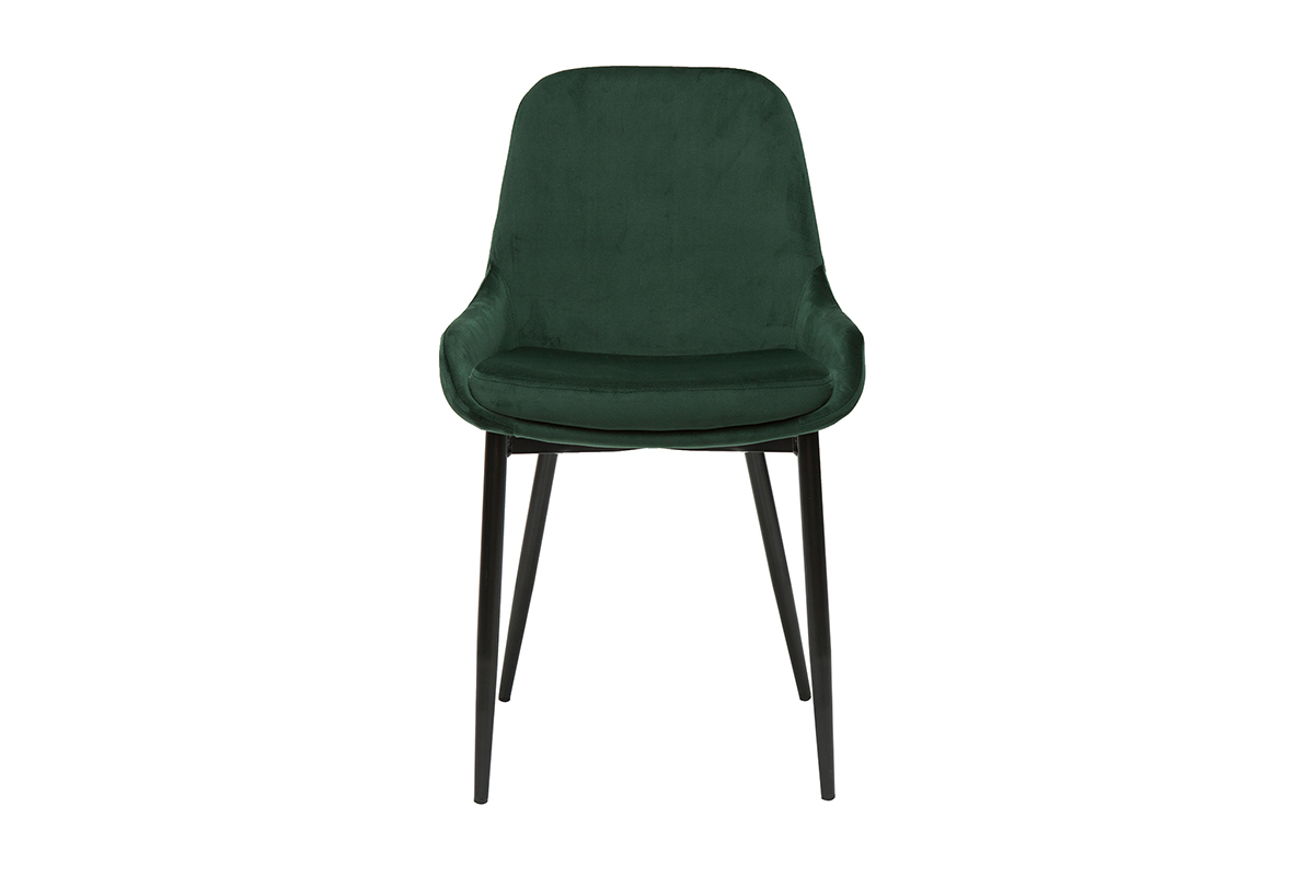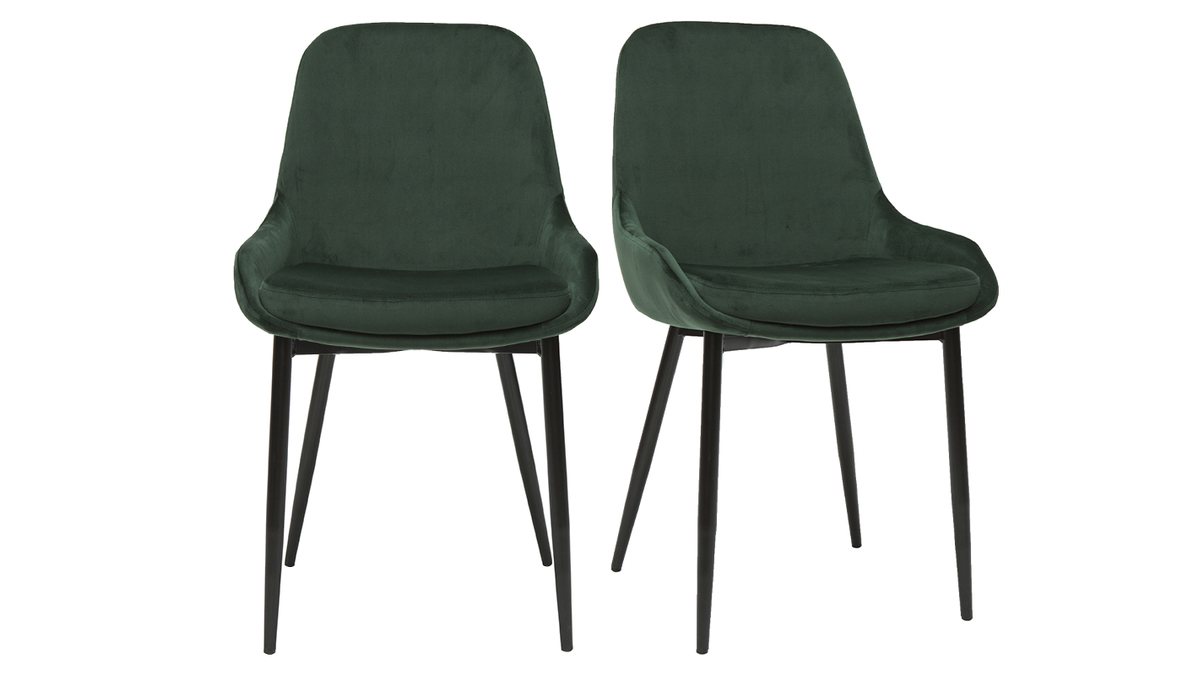 Le mélange entre une assise généreuse en tissu velours vert et un piètement fin en métal noir donne à ces chaises design un style délicat et raffiné. Le revêtement en velours est idéal pour un espace repas empli de douceur et de charme. Le modèle HOLO l'associe à un vert foncé pour un effet résolument chic. Un matériau tendance, une couleur sophistiquée, une jolie forme tout en courbes... tous les ingrédients sont réunis pour un espace repas élégant.
