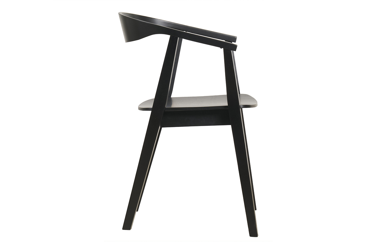 Ces belles assises seront les nouveaux atouts charme de votre intérieur. Combinée à un look monochrome noir, la belle silhouette rétro nous rappelle sans équivoque les pièces de mobiliers ethniques. Authentique et déco, ce modèle de chaise de cuisine design noire se distingue par son dossier circulaire dont les lignes courbes se prolongent jusqu'aux accoudoirs. Aériennes, faciles à prendre en main et déplacer, ces chaises avec accoudoirs en bois teinté noir sauront donner beaucoup de cachet à la salle à manger.
