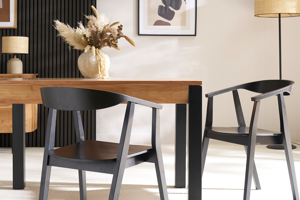 Chaises design noires en bois BAHIA vendues par lot de 2. Livrées prêtes à assembler.