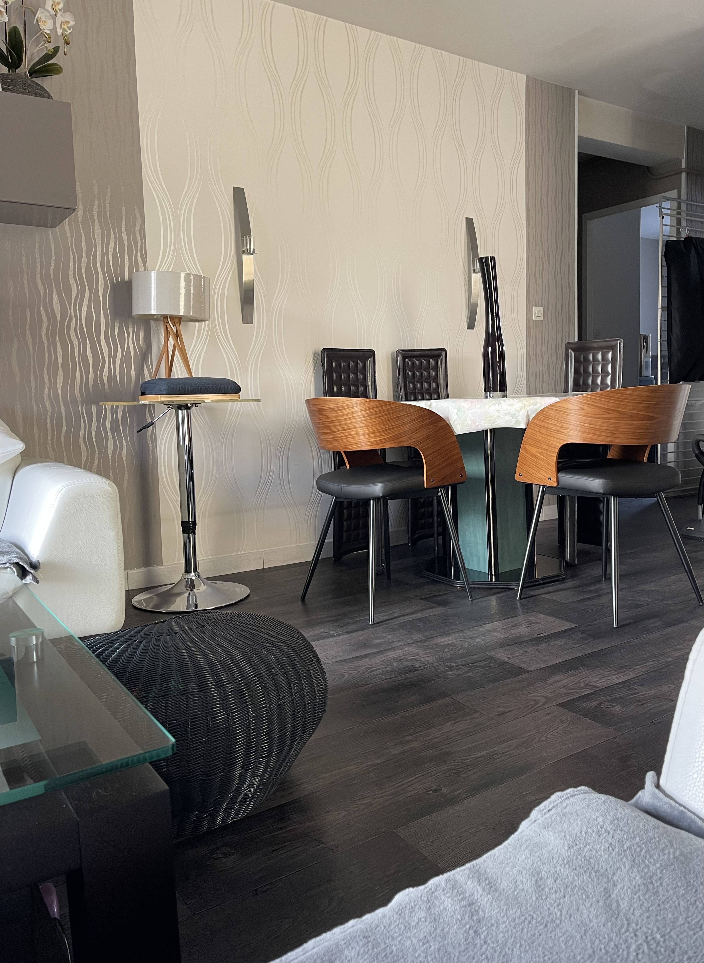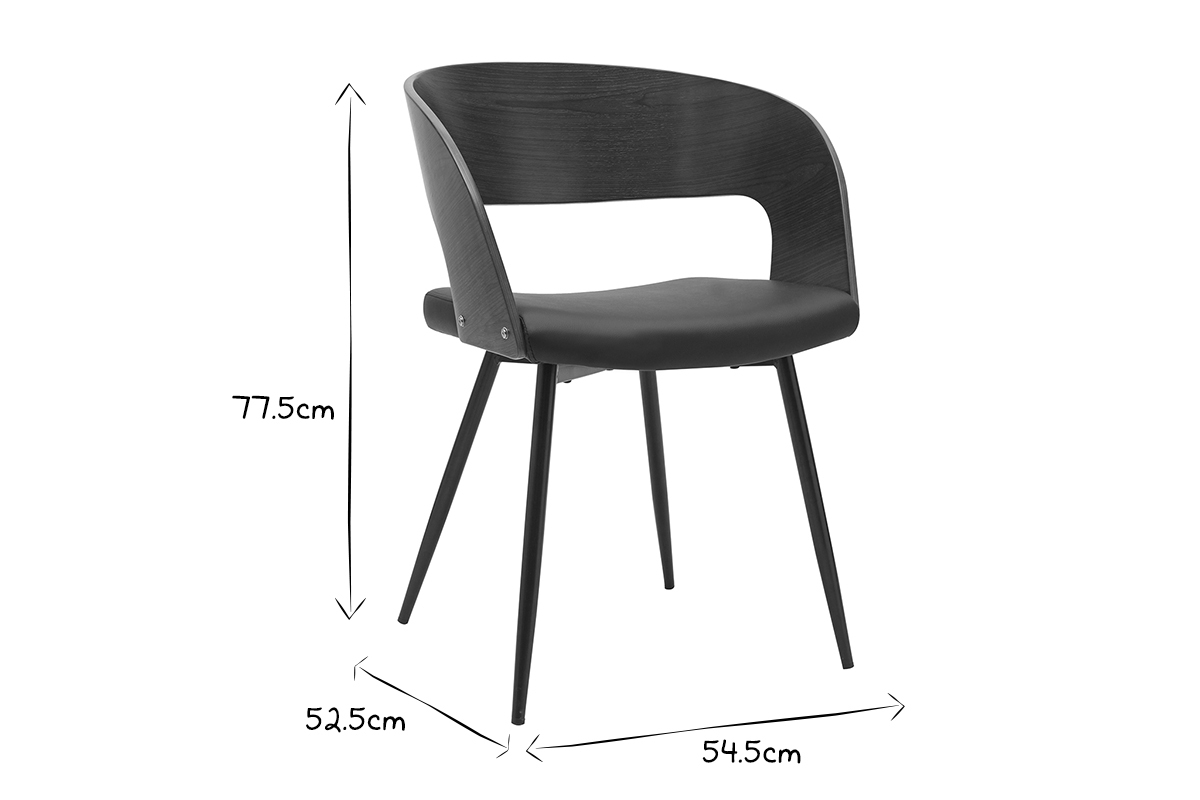 Ce modèle de chaises de salle à manger est la synthèse parfaite entre confort et modernité. L'assise souple et ferme (densité de la mousse 24 kg/m3) est habillée d'un élégant revêtement noir (100% polyuréthane) au grain lisse et régulier. Ce revêtement est à la fois doux au toucher, résistant à l'usure et facile d'entretien.
