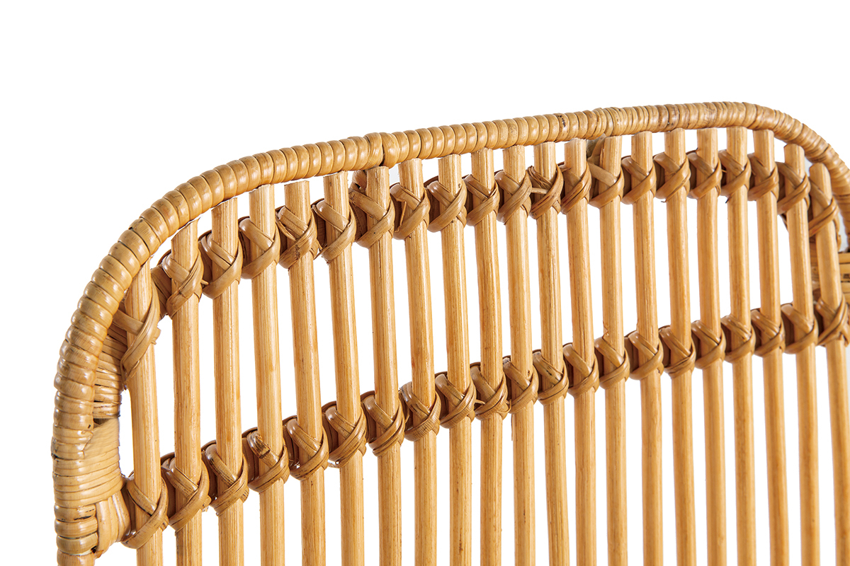 Pour les parties en rotin, dépoussiérez régulièrement avec un chiffon sec ou un aspirateur. Pour un nettoyage complet, utilisez de l'eau chaude avec un peu de lessive et quelques gouttes d'ammoniaque. Une fois rincé et séché, vous pouvez nourrir le rotin avec de l'huile de lin et le lustrer avec un chiffon. Pour les parties en métal, utilisez simplement un chiffon doux légèrement humide. Attention à ne pas utiliser de chiffon rugueux ou d'éponge abrasive, ce qui aurait pour effet de rayer la surface. Ne pas utiliser de produit ménager agressif.