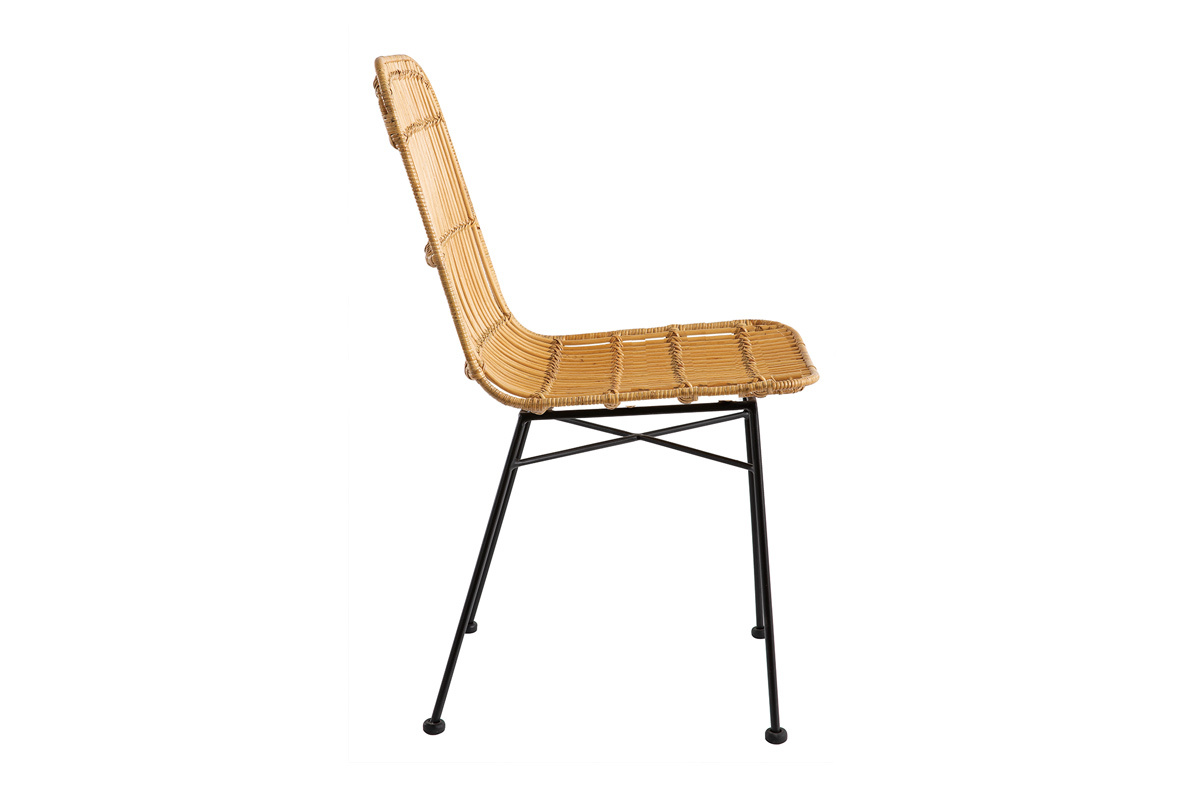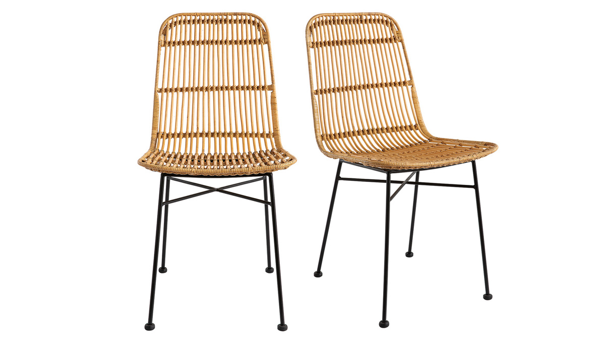 Ces chaises en rotin sont des assises de caractère réalisées artisanalement. Leurs lignes épurées en font des pièces d'une grande légèreté visuelle qui s'adaptent à tous les intérieurs. La tendance est au rotin ! Une matière qui s'intègre très facilement aux différentes pièces de la maison et apporte un style exotique qu'on adore. Avec leur authentique structure en rotin peinte en noir et leurs jolies courbes, ces chaises à l'inspiration rétro sont idéales pour apporter élégance et charme à l'espace repas. Que votre intérieur soit vintage, bohème ou ethnique chic, ces chaises en rotin et métal noir trouveront toujours leur place !