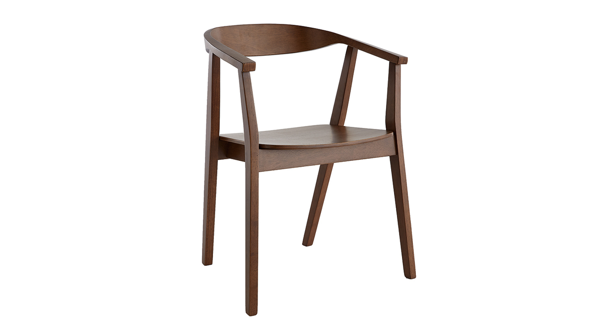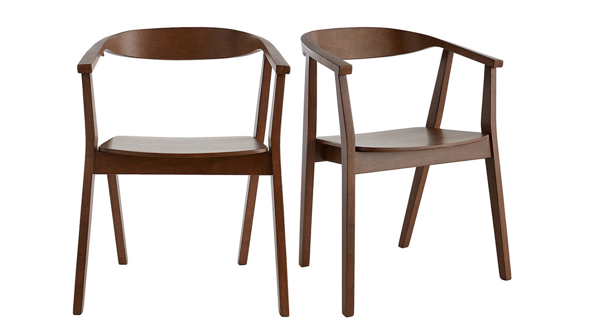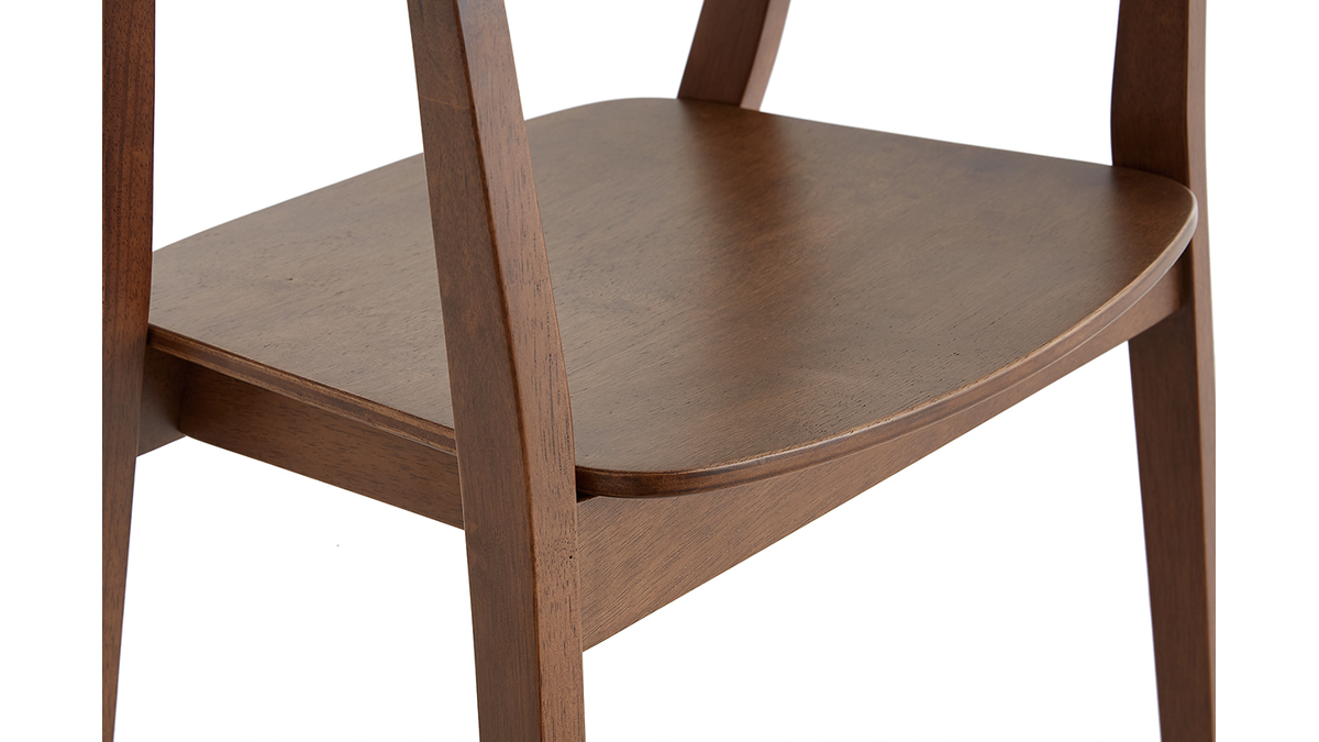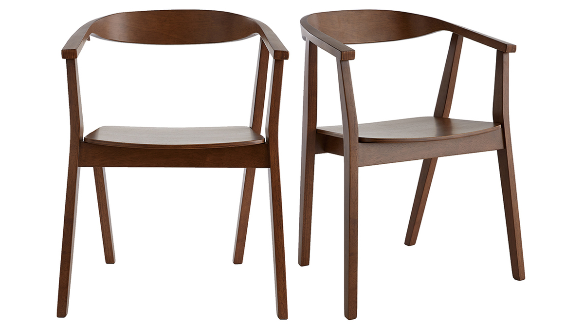 Ces belles assises seront les nouveaux atouts charme de votre intérieur. Combinée à un total look bois foncé, la belle silhouette rétro nous rappelle sans équivoque les pièces de mobiliers nordiques des années 50. Authentique et déco, ce modèle de chaise de cuisine design en bois foncé se distingue par son dossier circulaire dont les lignes courbes se prolongent jusqu'aux accoudoirs. Aériennes, faciles à prendre en main et déplacer, ces chaises avec accoudoirs en bois teinté noyer sauront donner beaucoup de cachet à la salle à manger.
