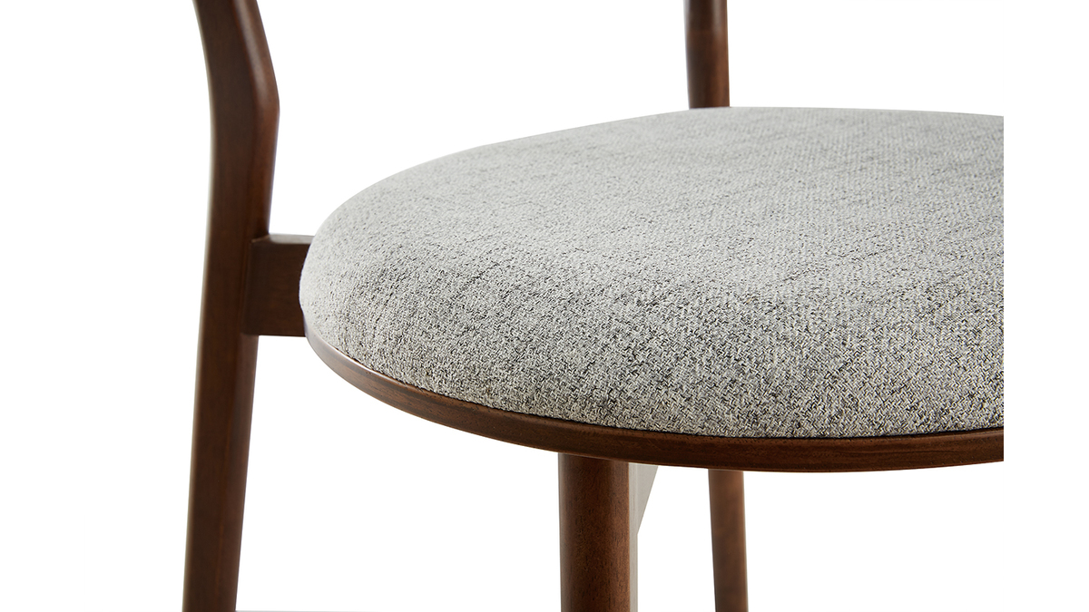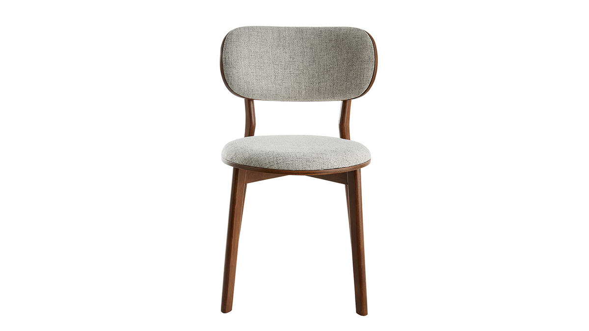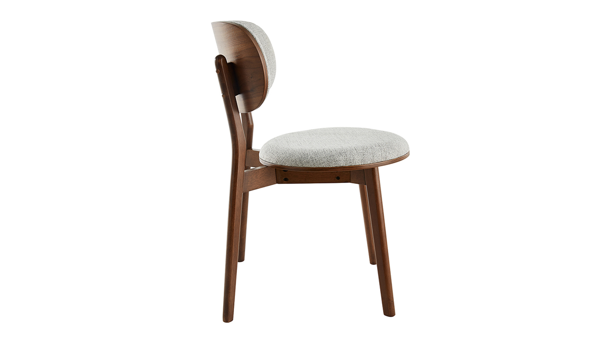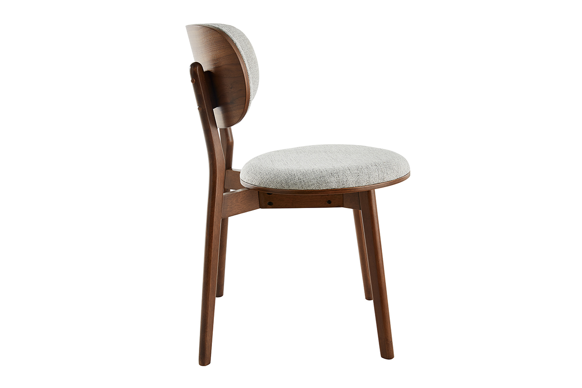 Avec leur délicate saveur vintage, ces chaises gris et bois foncé s'intègrent tout naturellement dans les intérieurs en quête d'authenticité. On aime le contraste entre le charme rustique d'une structure en bois foncé (placage noyer), avec ses noeuds, ses veines marquées ainsi que ses douces nuances dorées et la modernité d'un tissu gris (100% polyester).