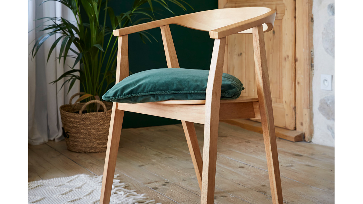 Ces belles assises seront les nouveaux atouts charme de votre intérieur. Combinée à un total look bois clair, la belle silhouette rétro nous rappelle sans équivoque les pièces de mobilier nordiques des années 50. Authentique et déco, ce modèle de chaise de cuisine design en bois clair se distingue par son dossier circulaire dont les lignes courbes se prolongent jusqu'aux accoudoirs. Aériennes, faciles à prendre en main et à déplacer, ces chaises avec accoudoirs en bois massif sauront donner beaucoup de cachet à la salle à manger.