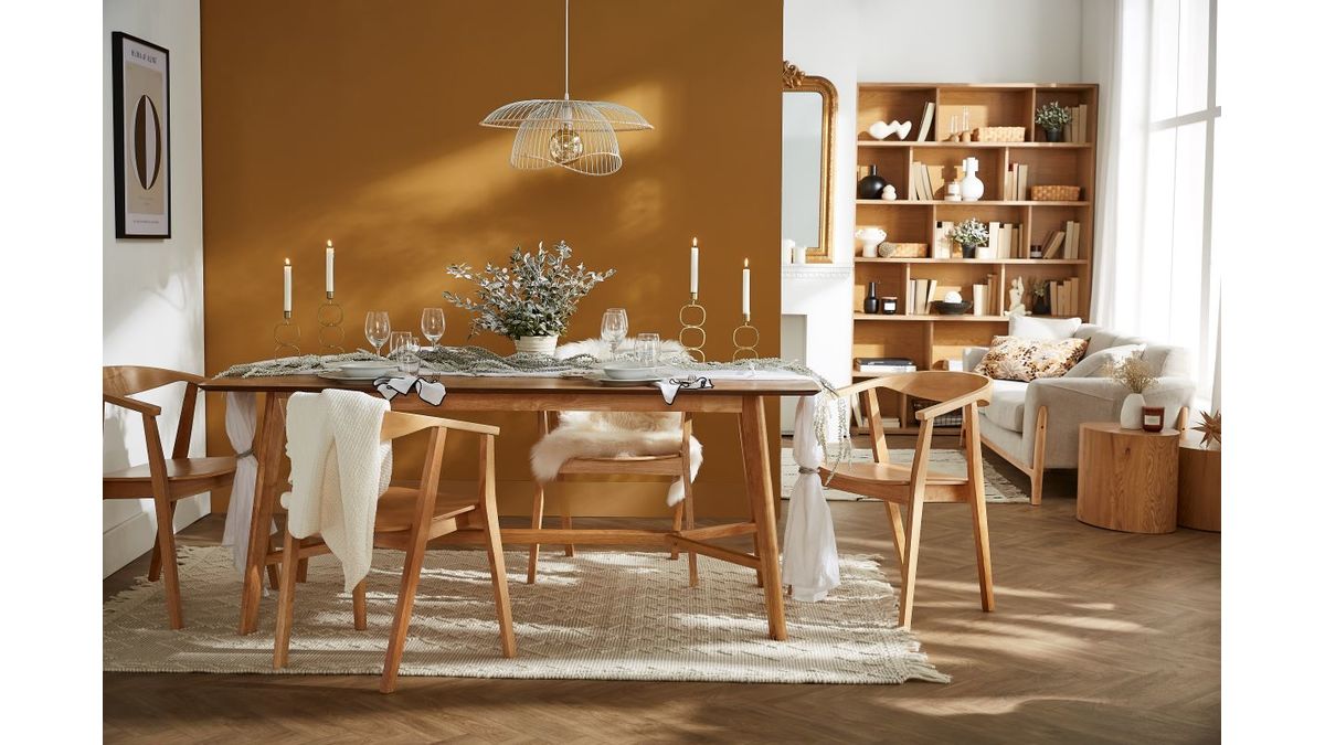 Pour un espace repas harmonieux, accompagnez les BAHIA d'une table à manger en bois massif. Une suspension en fibres viendra parfaire le décor et réchauffer d'autant plus l'atmosphère !