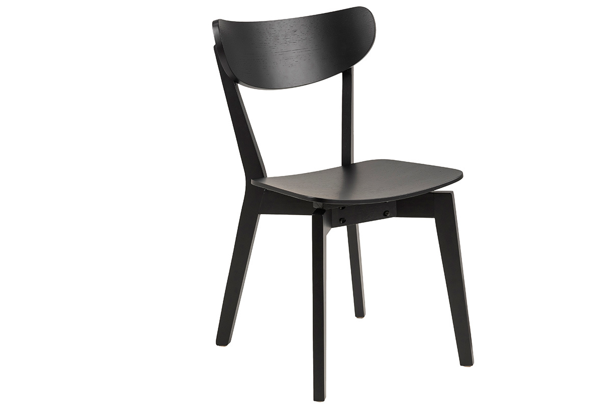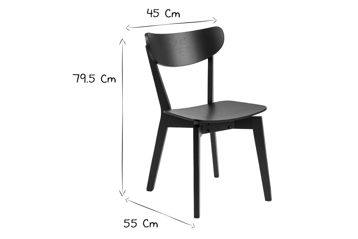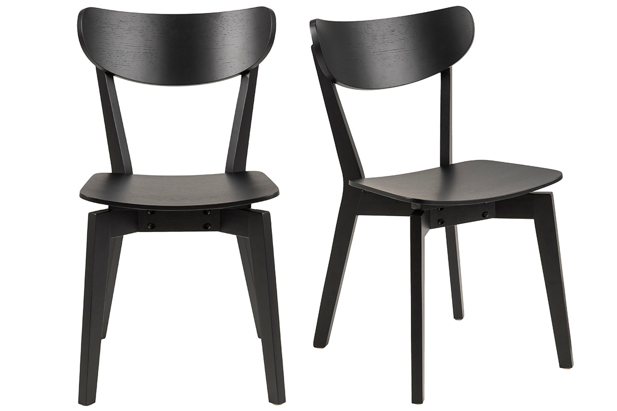 Le design de ces chaises de salle à manger évoque les assises scandinaves. Les lignes courbes, le placage chêne, le minimalisme de leur forme... autant d'éléments caractéristiques du mobilier nordique. Cet esprit scandi a été associé à une teinte noire élégante et moderne. Ce revêtement monochrome en fait des chaises faciles à intégrer dans son intérieur. Autour d'une table à manger en bois, elles créeront cette atmosphère chaleureuse et conviviale recherchée pour les espaces repas. On les associe avec des chaises dépareillées en métal, en bois clair ou colorées pour une salle à manger tendance.