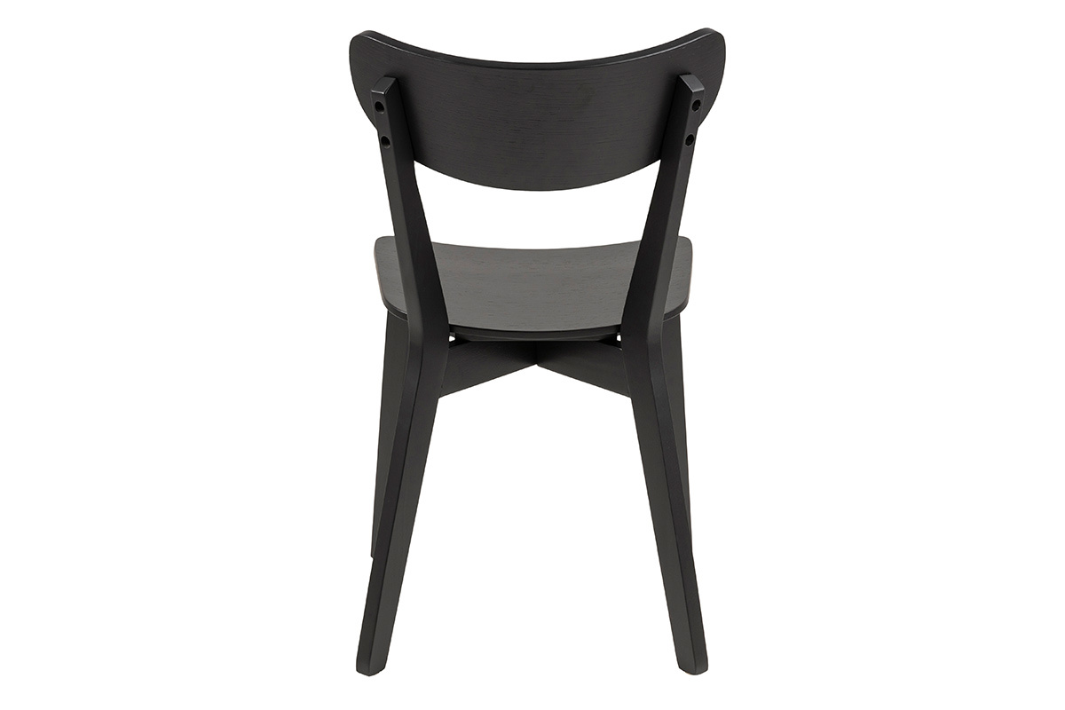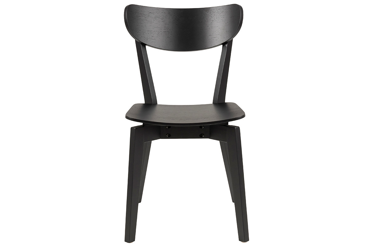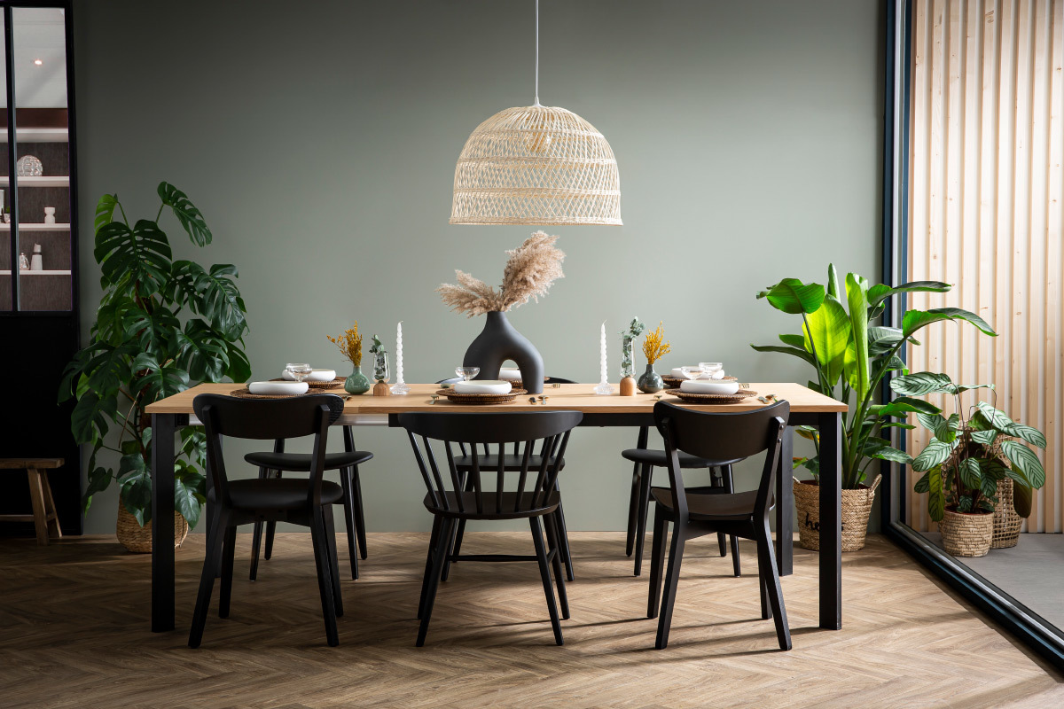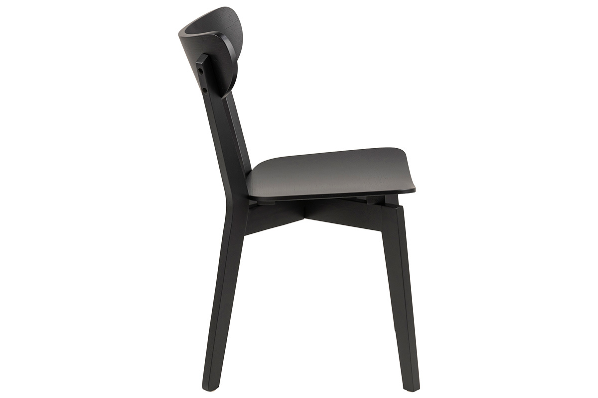 Le design de ces chaises de salle à manger évoque les assises scandinaves. Les lignes courbes, le placage chêne, le minimalisme de leur forme... autant d'éléments caractéristiques du mobilier nordique. Cet esprit scandi a été associé à une teinte noire élégante et moderne. Ce revêtement monochrome en fait des chaises faciles à intégrer dans son intérieur. Autour d'une table à manger en bois, elles créeront cette atmosphère chaleureuse et conviviale recherchée pour les espaces repas. On les associe avec des chaises dépareillées en métal, en bois clair ou colorées pour une salle à manger tendance.