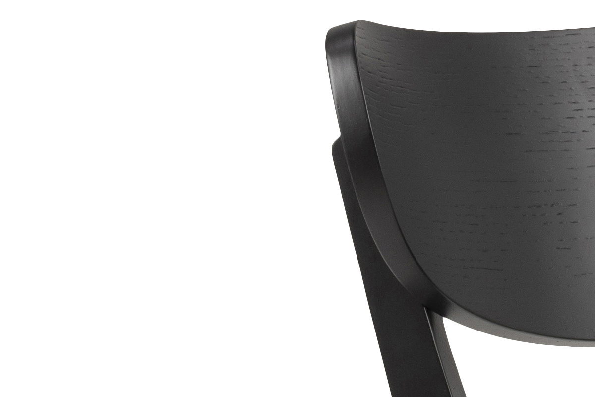 Les chaises BAKI, l'association réussie entre une forme tout en rondeurs et un coloris noir moderne.