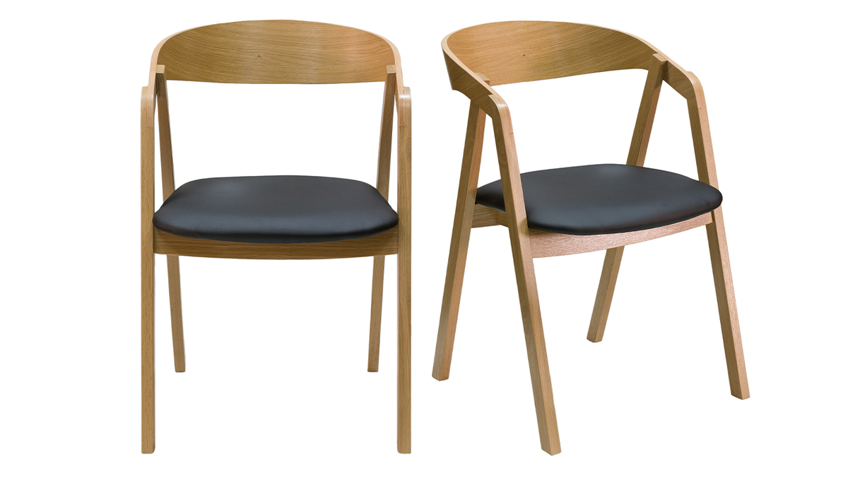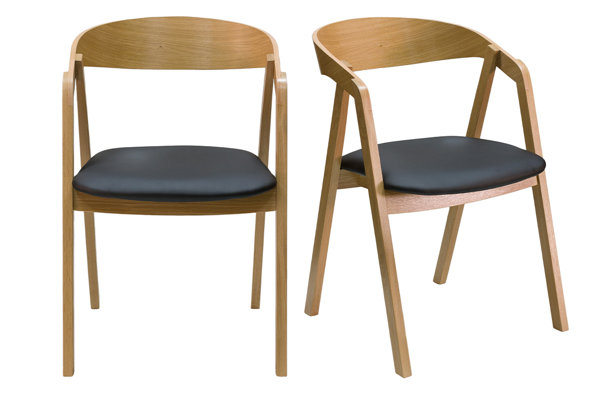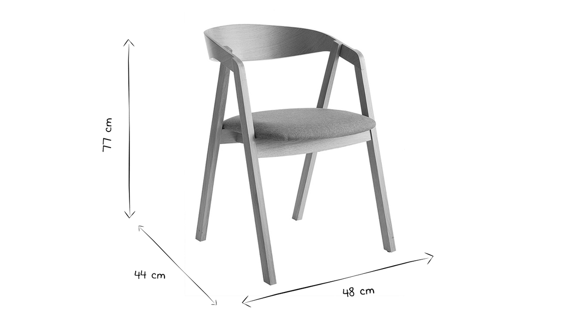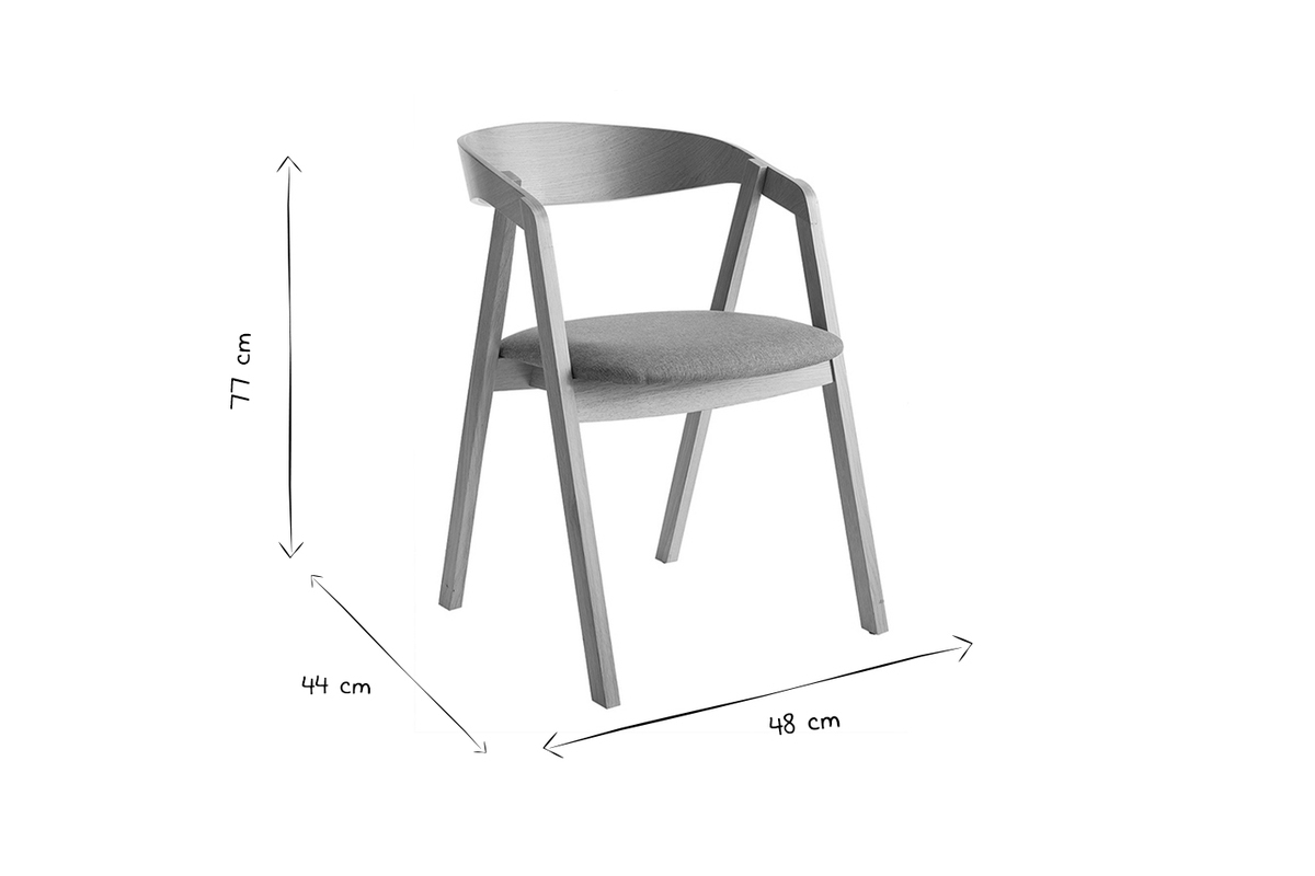 Élégant compromis entre la chaise et le fauteuil, ces chaises en bois avec accoudoirs se composent d'une structure aux volumes épurés en chêne massif (pieds) et contreplaqué chêne (dossier) qui offre une excellente prise en main. Aussi agréable à l'oeil qu'au toucher, l'assise rembourrée de mousse se pare d'un revêtement résistant (100% polyester). Idéal pour épouser le galbe du dos, le dossier courbé résolument enveloppant unis ses courbes aux lignes franches de quatre pieds. Travaillés avec originalité, ces derniers offrent une grande stabilité à l'ensemble.