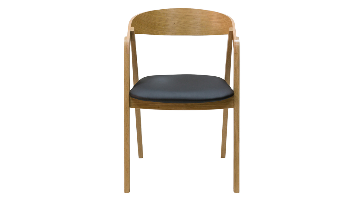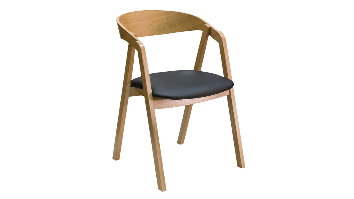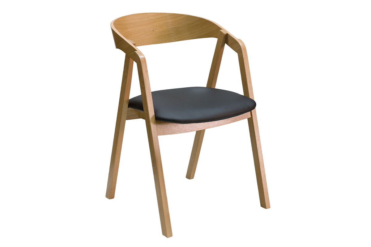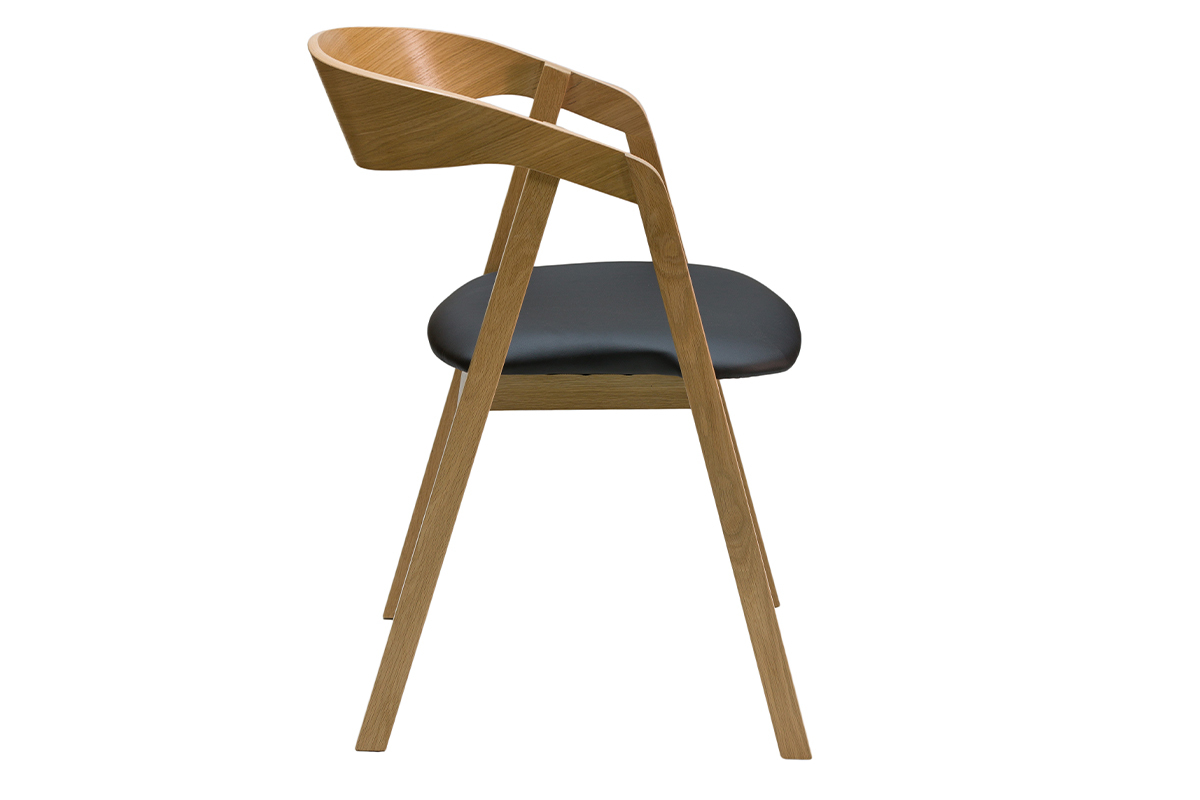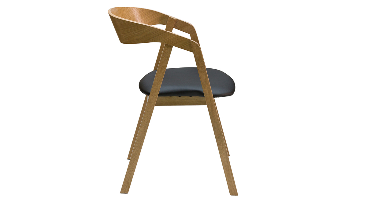 Élégant compromis entre la chaise et le fauteuil, ces chaises en bois avec accoudoirs se composent d'une structure aux volumes épurés en chêne massif (pieds) et contreplaqué chêne (dossier) qui offre une excellente prise en main. Aussi agréable à l'oeil qu'au toucher, l'assise rembourrée de mousse se pare d'un revêtement résistant (100% polyester). Idéal pour épouser le galbe du dos, le dossier courbé résolument enveloppant unis ses courbes aux lignes franches de quatre pieds. Travaillés avec originalité, ces derniers offrent une grande stabilité à l'ensemble.