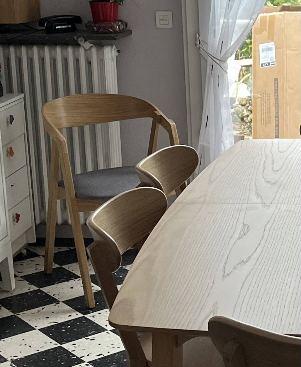 Matière structure : Chêne massif (pieds) et contreplaqué chêne (dossier)