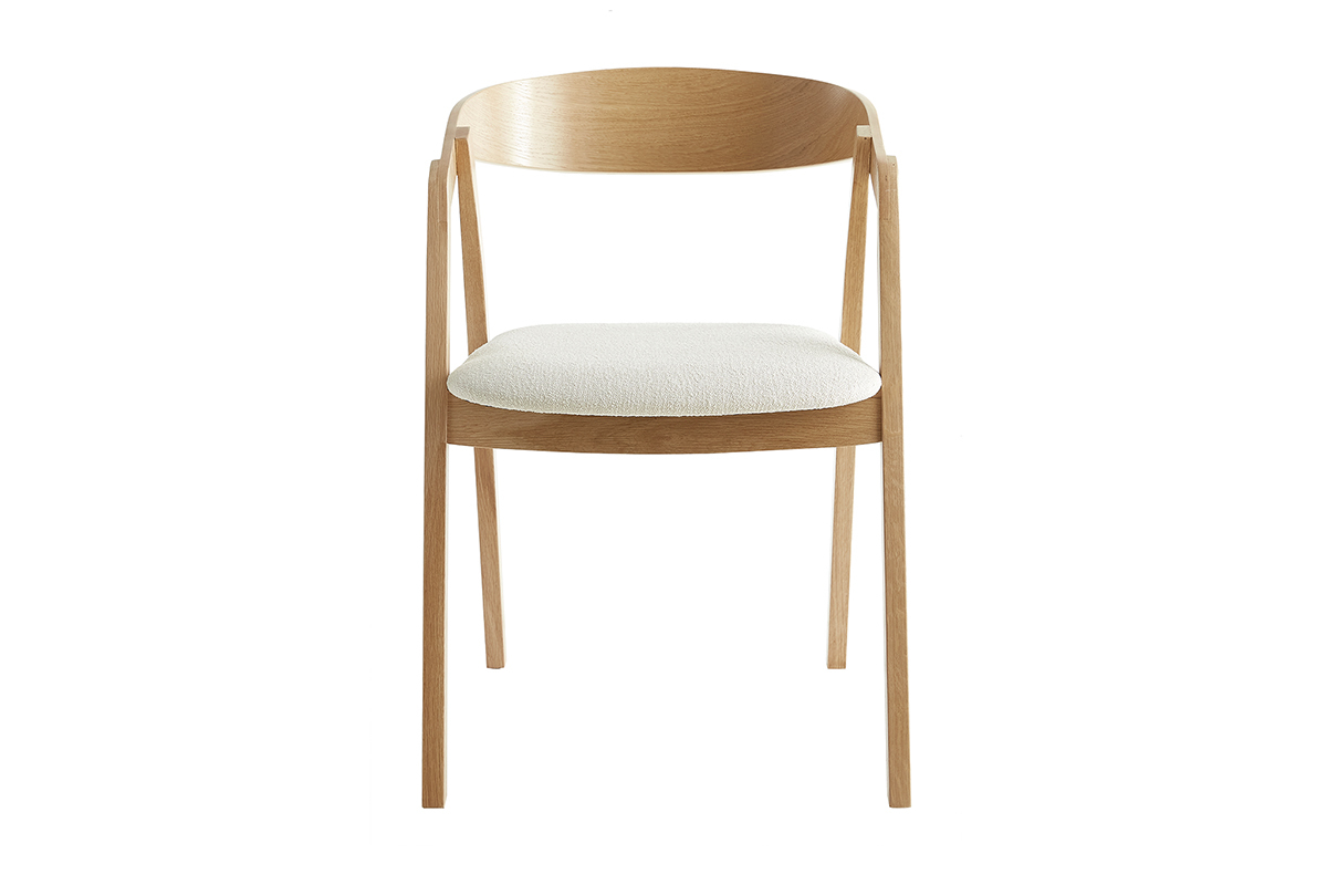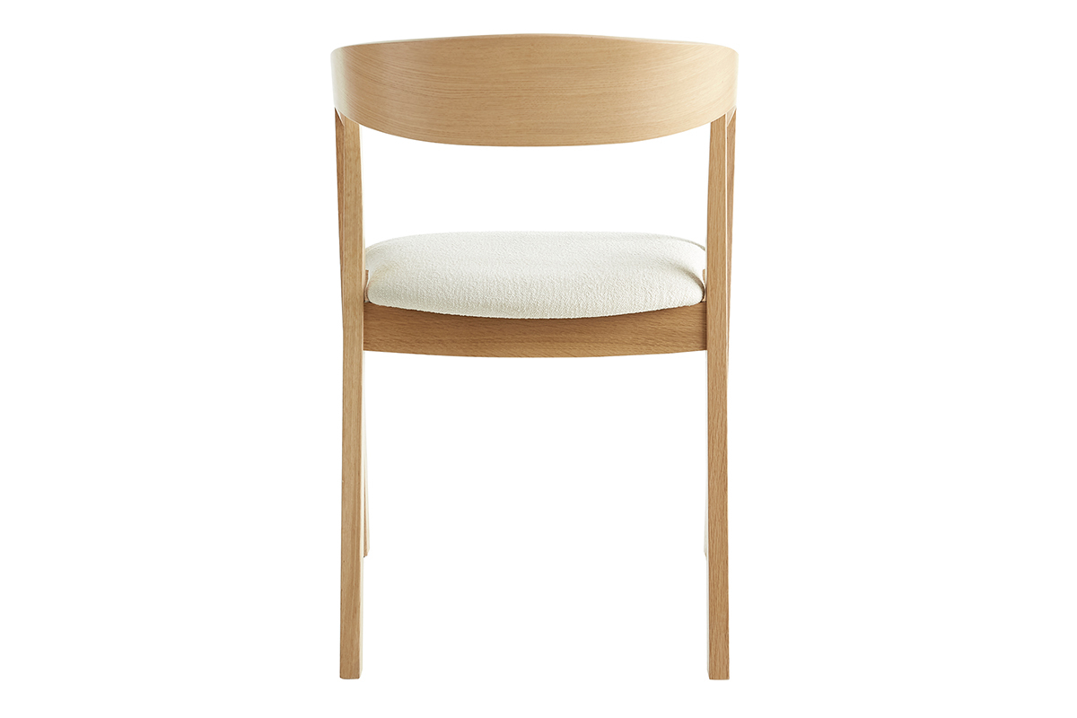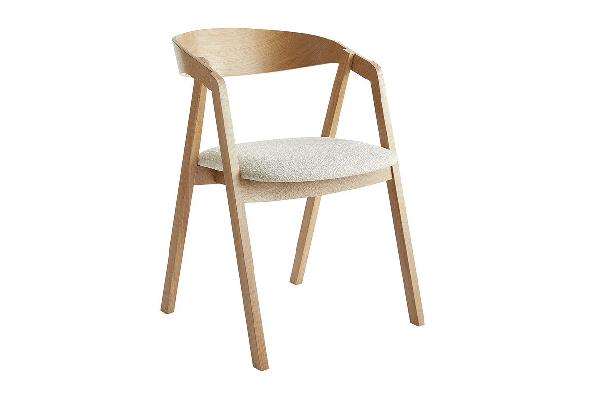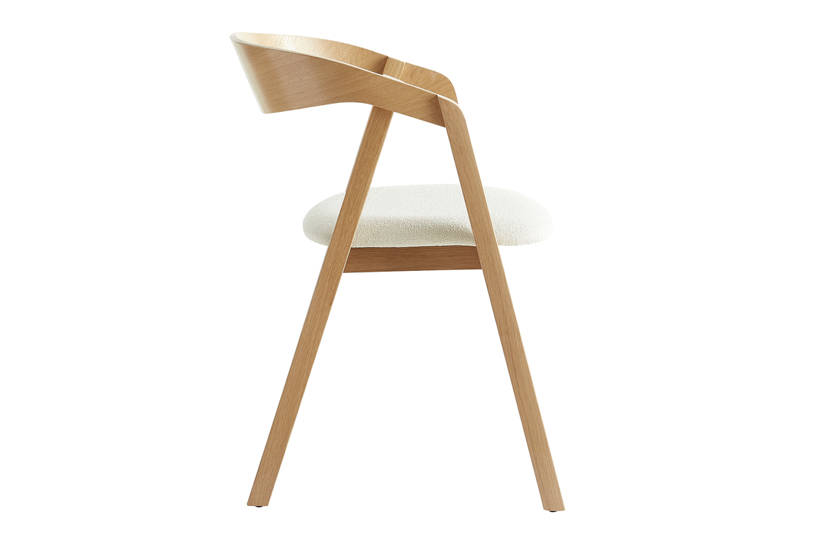 Élégant compromis entre la chaise et le fauteuil, ces chaises en bois avec accoudoirs se composent d'une structure aux volumes épurés en chêne massif (pieds) et contreplaqué chêne (dossier) qui offre une excellente prise en main. Aussi agréable à l'oeil qu'au toucher, l'assise rembourrée de mousse se pare d'un revêtement blanc résistant (100% polyester). Idéal pour épouser le galbe du dos, le dossier courbé résolument enveloppant unis ses courbes aux lignes franches de quatre pieds. Travaillés avec originalité, ces derniers offrent une grande stabilité à l'ensemble.