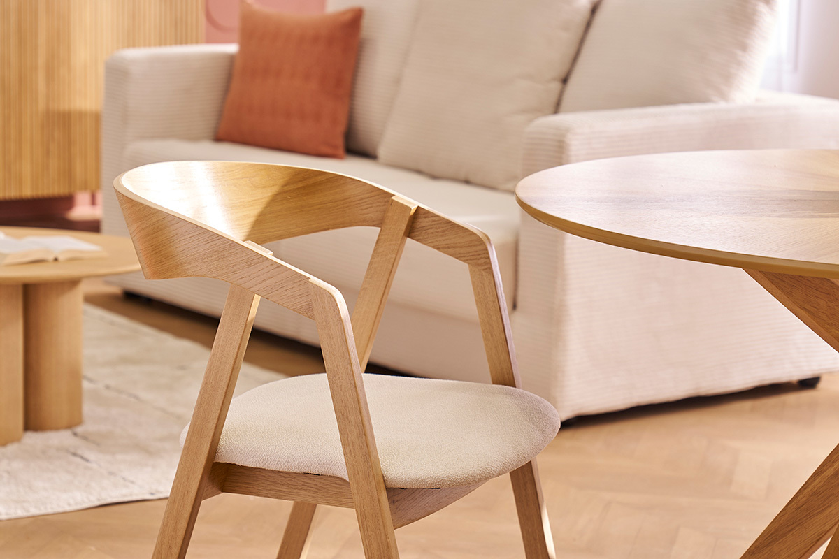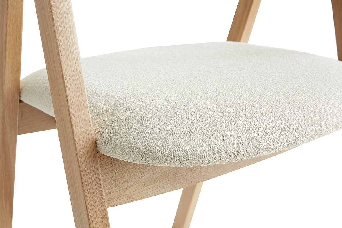 La simplicité des formes caractérise les silhouettes iconiques des chaises scandinaves LOVA. Bois clair et tissu effet laine bouclée coloris écru forment une alliance intemporelle et sans fausse note qui ne prendra pas une ride ! Avec un look indémodable et singulier, un style aussi vintage que contemporain, ces chaises en tissu bouclette et bois clair feront bonne figure dans un intérieur cosy où elles tiendront différents rôles. Avec leurs dimensions L48 x P44 x H77 cm, placées en bout d'une table à manger, de part et d'autre d'une chambre ou d'une entrée ou encore en solo face à un bureau, elles réchaufferont l'ambiance et apporteront une touche d'authenticité à votre pièce de vie.