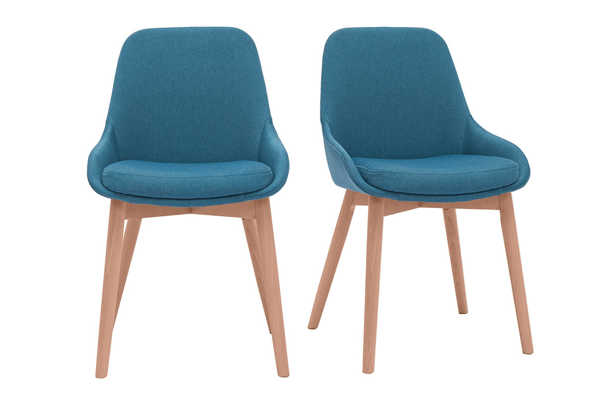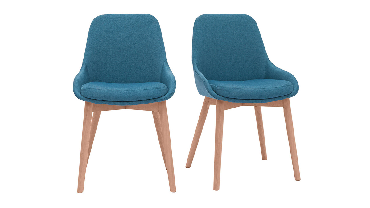 Entre design contemporain et authenticité, ces chaises en tissu bleu canard et piètement bois clair conjuguent avec style lignes épurées et authenticité. Pile dans la tendance nordique, les silhouettes intemporelles de ces chaises scandinaves camperont avec une élégante simplicité dans une cuisine ou une salle à manger en quête de douceur et de fonctionnalité.