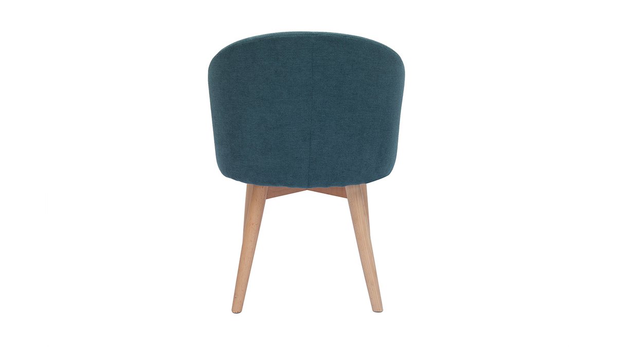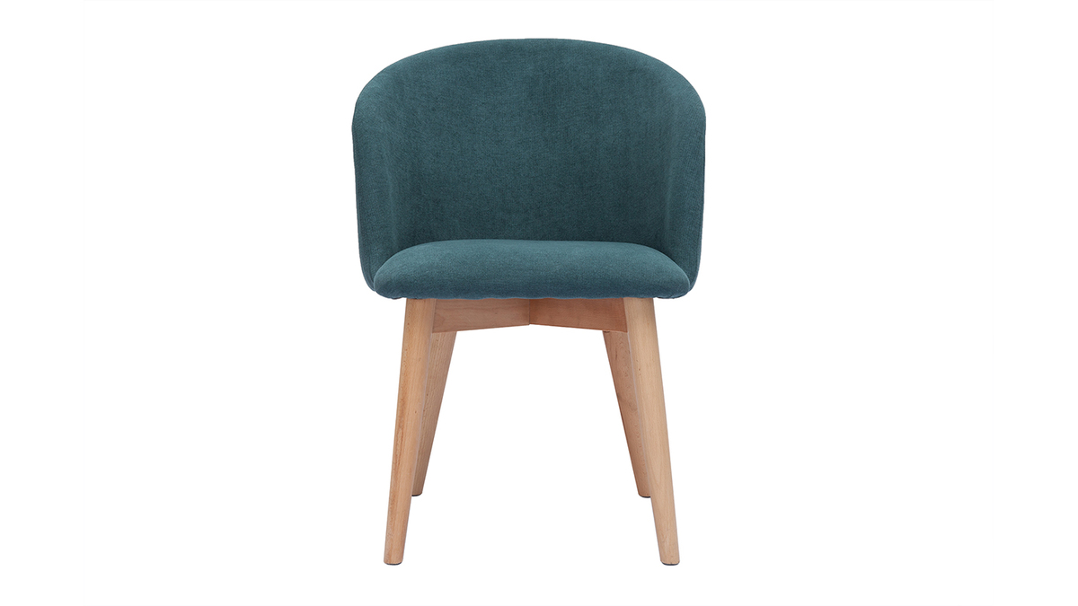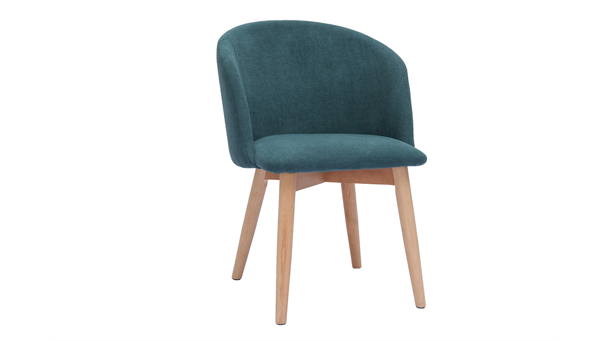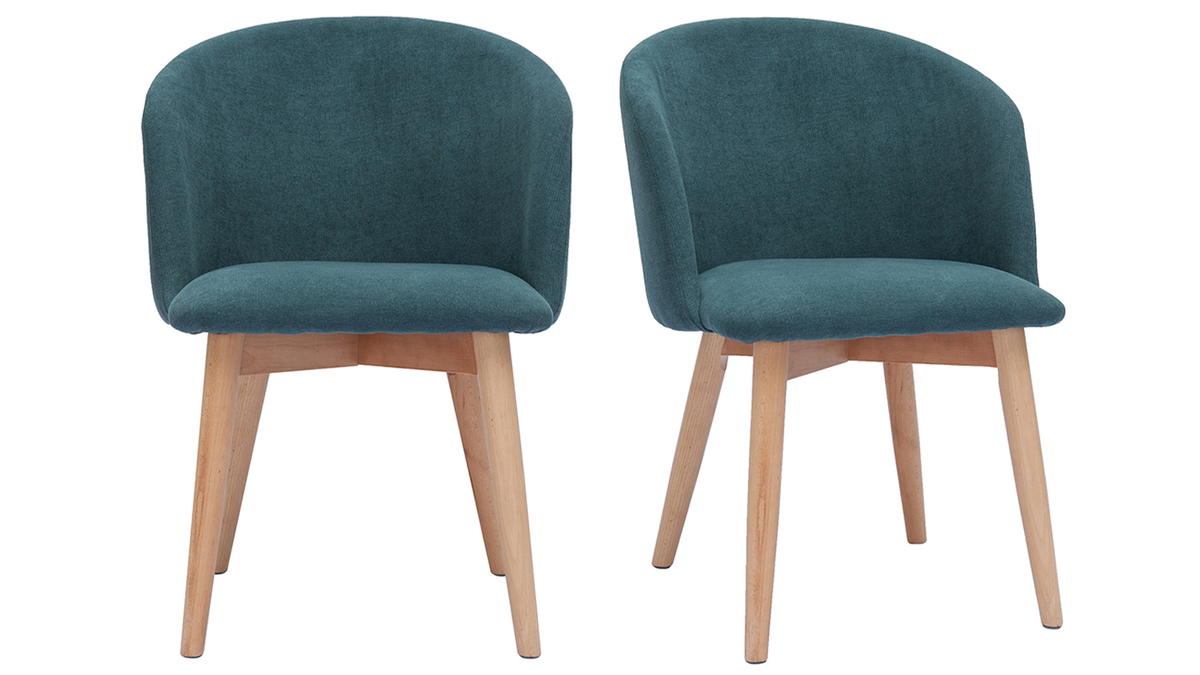 Avec leurs formes généreuses et leurs pieds en hêtre massif, ces chaises en bois et bleu canard font écho à la tendance Hygge qui célèbre un art de vivre chaleureux et authentique. Leur revêtement en tissu effet velours nous transporte dans un monde de douceur. Le dossier enveloppant (L56 x H39 cm) forme comme un rempart et l'assise moelleuse (densité de la mousse 25 kg/m³) est propice à de longues soirées de détente autour d'un bon repas.
