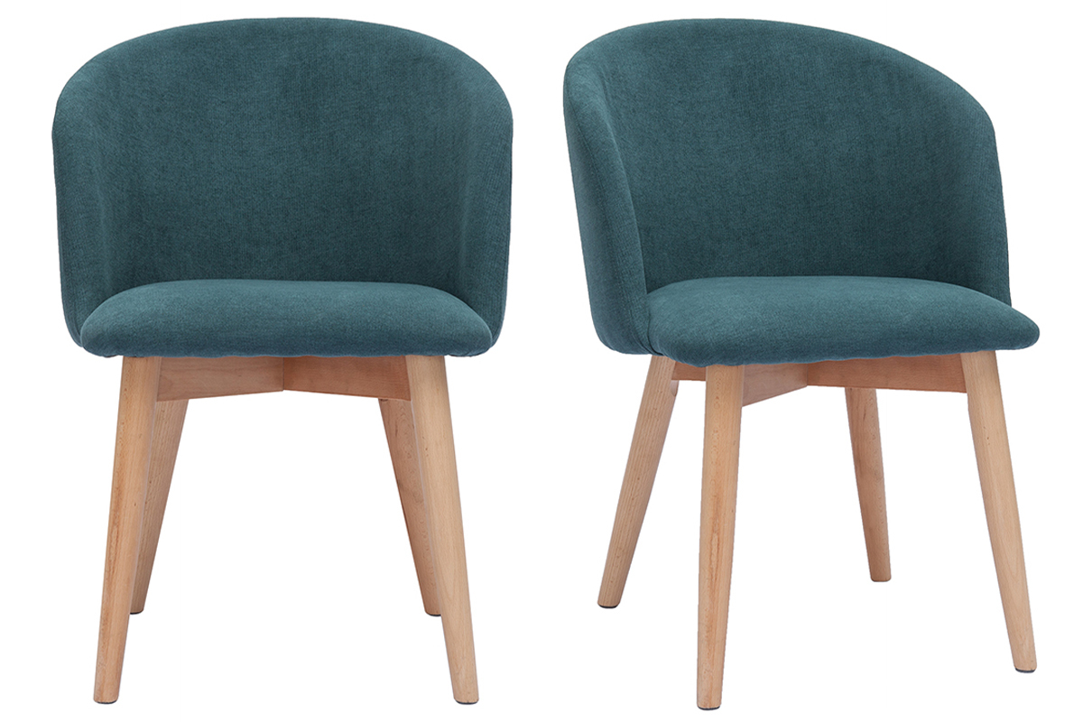 Chaises scandinaves bleu canard et bois massif livrées par lot de 2. Livrées prêtes à monter.