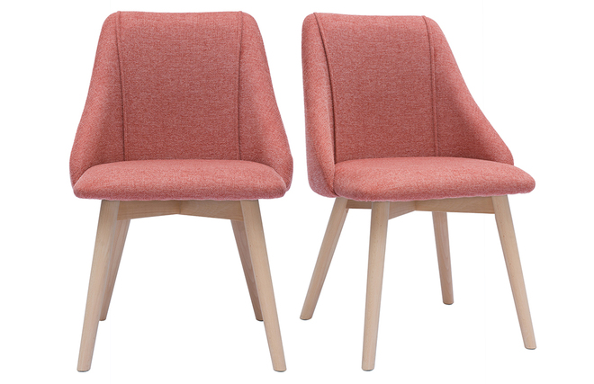 Chaises scandinaves en tissu effet velours texturé terracotta et bois clair HIGGINS vendues par lot de 2. Livrées prêtes à assembler. Montage simple, seuls les pieds sont à fixer.