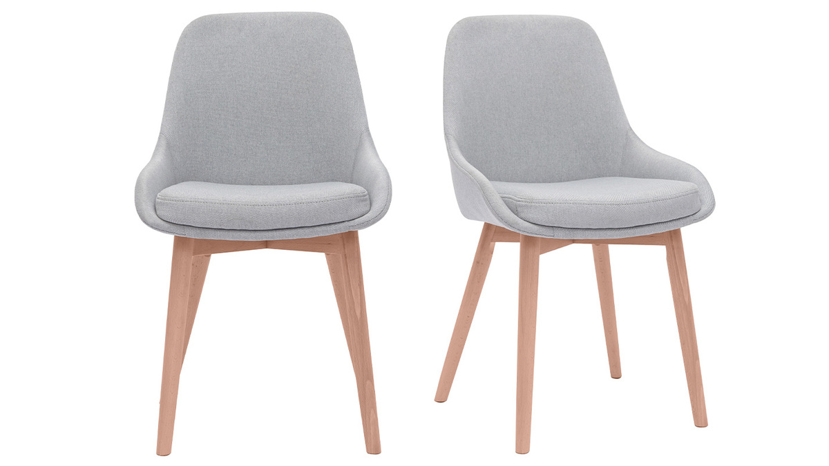 Entre design contemporain et authenticité, ces chaises en tissu gris et piètement bois clair conjuguent avec style lignes épurées et authenticité. Pile dans la tendance nordique, les silhouettes intemporelles de ces chaises scandinaves camperont leur élégante simplicité dans une cuisine ou une salle à manger en quête de douceur et de fonctionnalité.