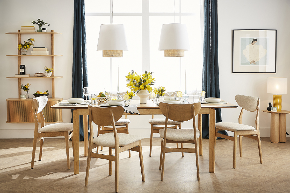Pour un espace repas aux accents rétro, une table à manger couleur noyer contrastera joliment avec les couleurs claires de ces chaises épurées. On les imagine également très bien autour d'une table à manger bois clair pour insuffler un esprit nordique, ou encore d'une table minimaliste afin de créer un espace repas soigné !