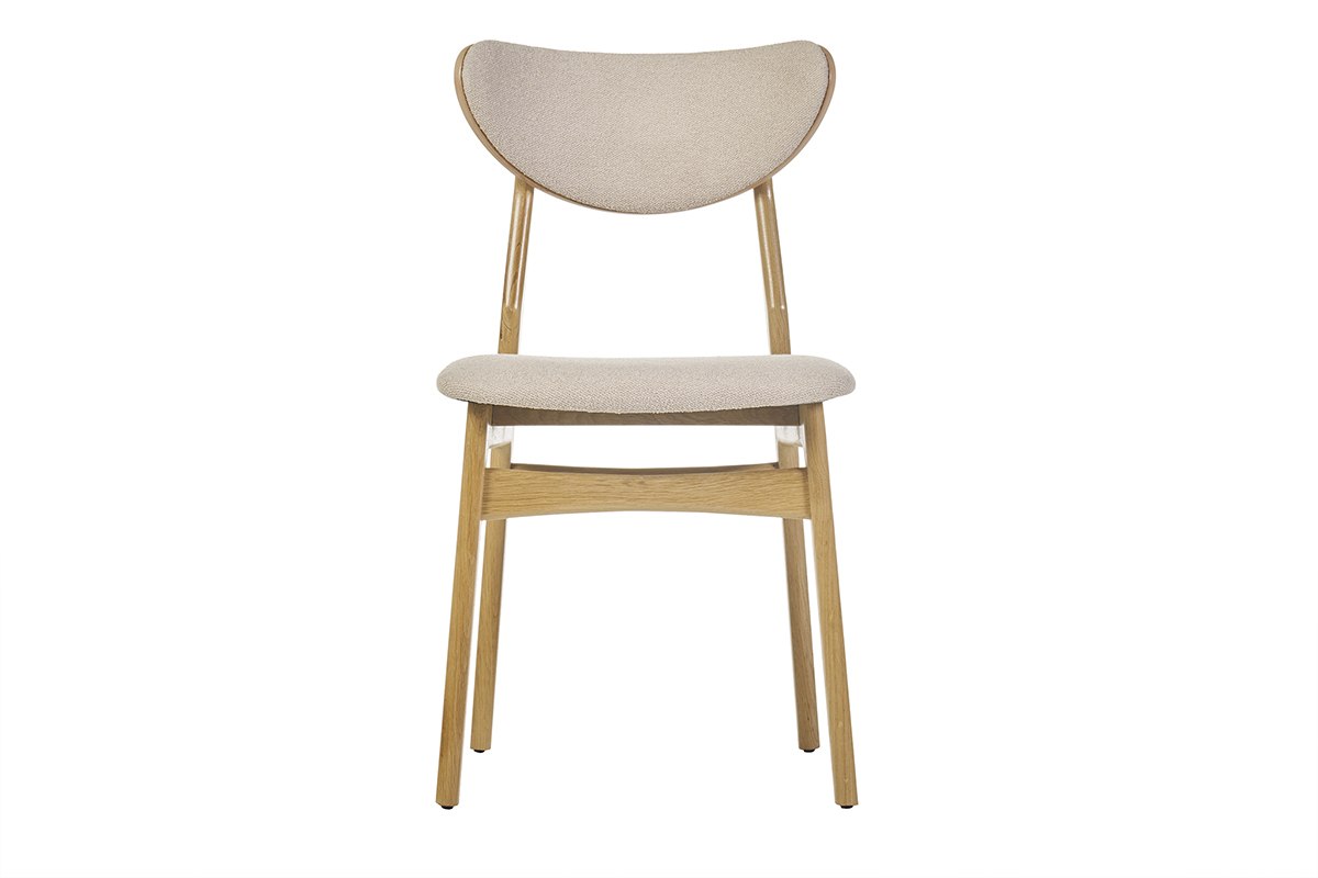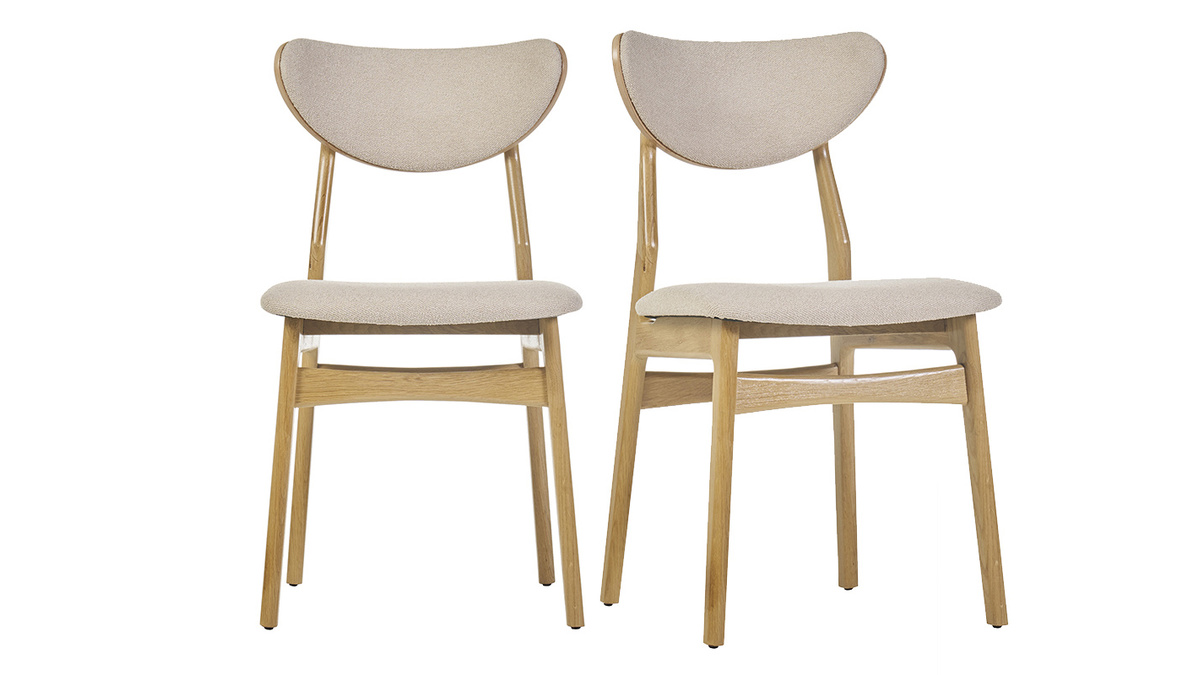 Arborant un séduisant mélange entre une structure bois en chêne massif et un doux revêtement en tissu effet laine bouclée beige, les chaises MAYA affichent d'emblée leur amour pour le réconfort et la délicatesse. Ces deux textures infiniment chaleureuses s'unissent à merveille, créant des chaises de salle à manger en bois et tissu à la beauté intemporelle. Une silhouette travaillée tout en rondeurs vient parfaitement mettre en valeur ce superbe mariage de matières !
