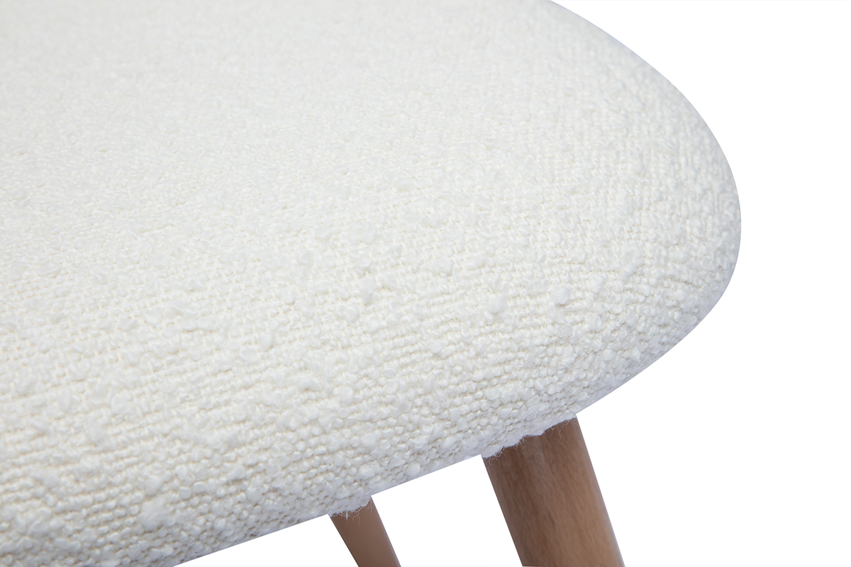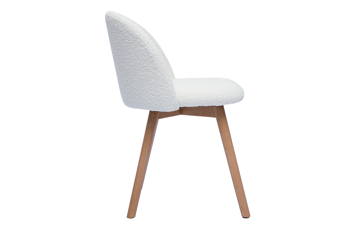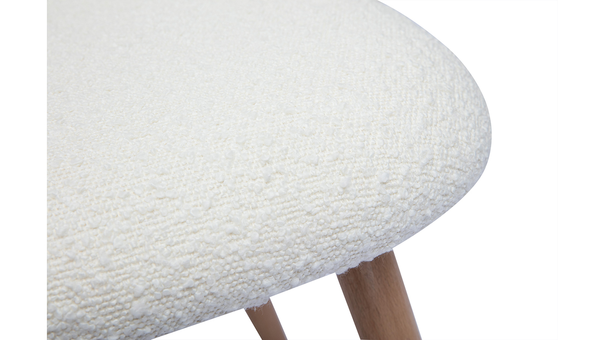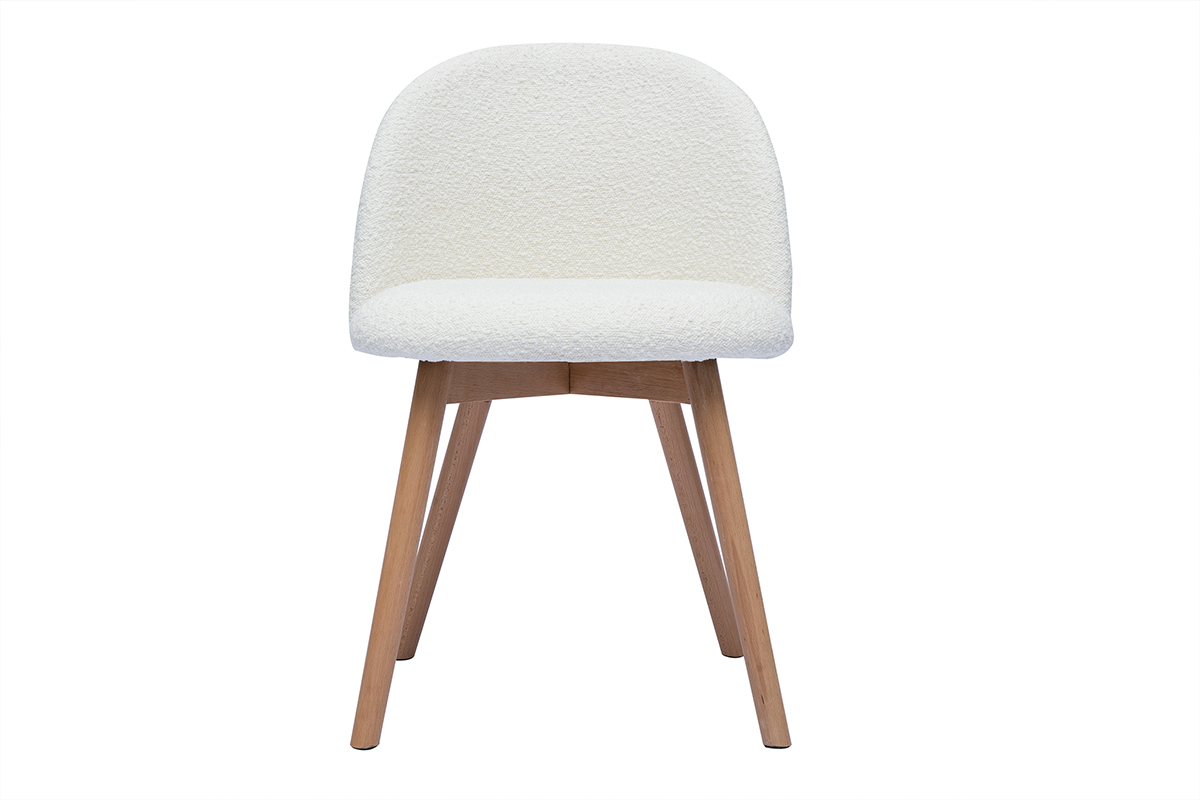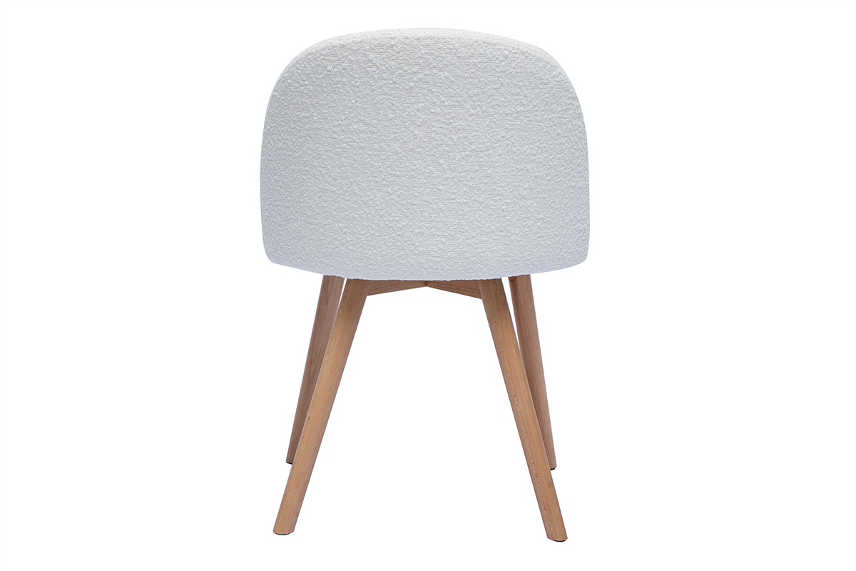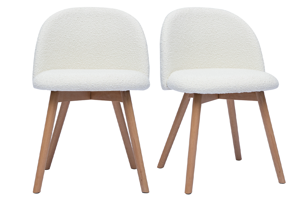 Tissu effet laine bouclée blanc, pieds en hêtre massif, lignes arrondies : ces chaises en bouclette et bois clair reflètent tout ce qui fait le charme du style nordique.