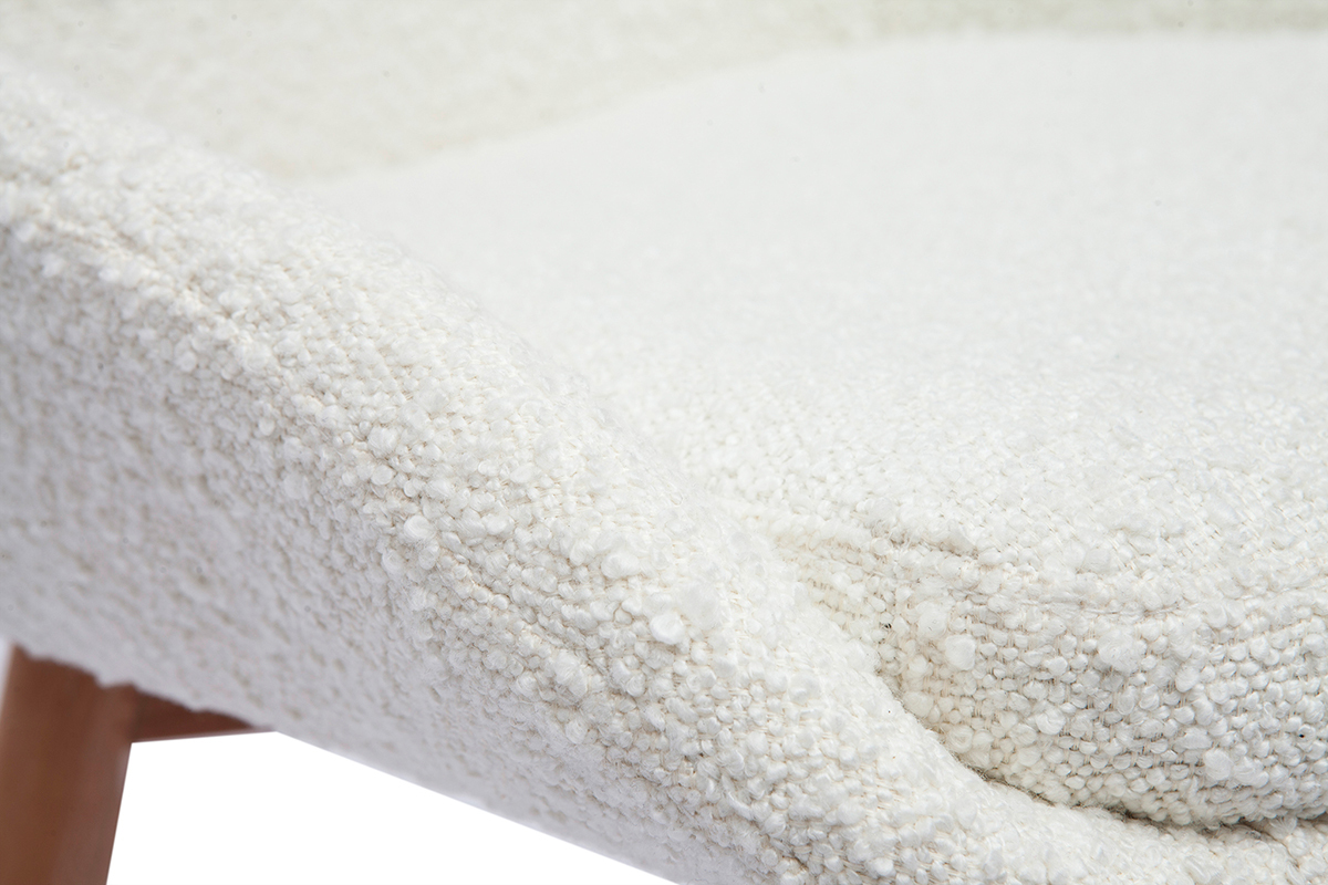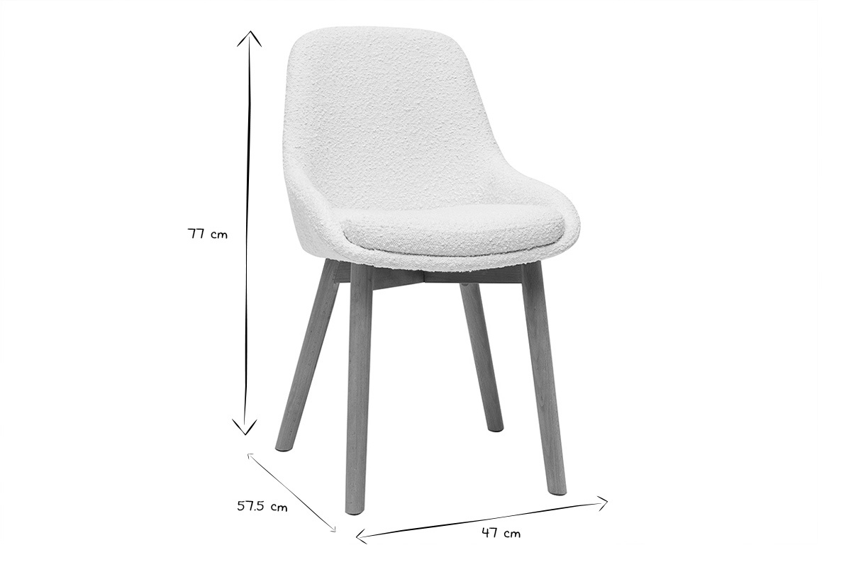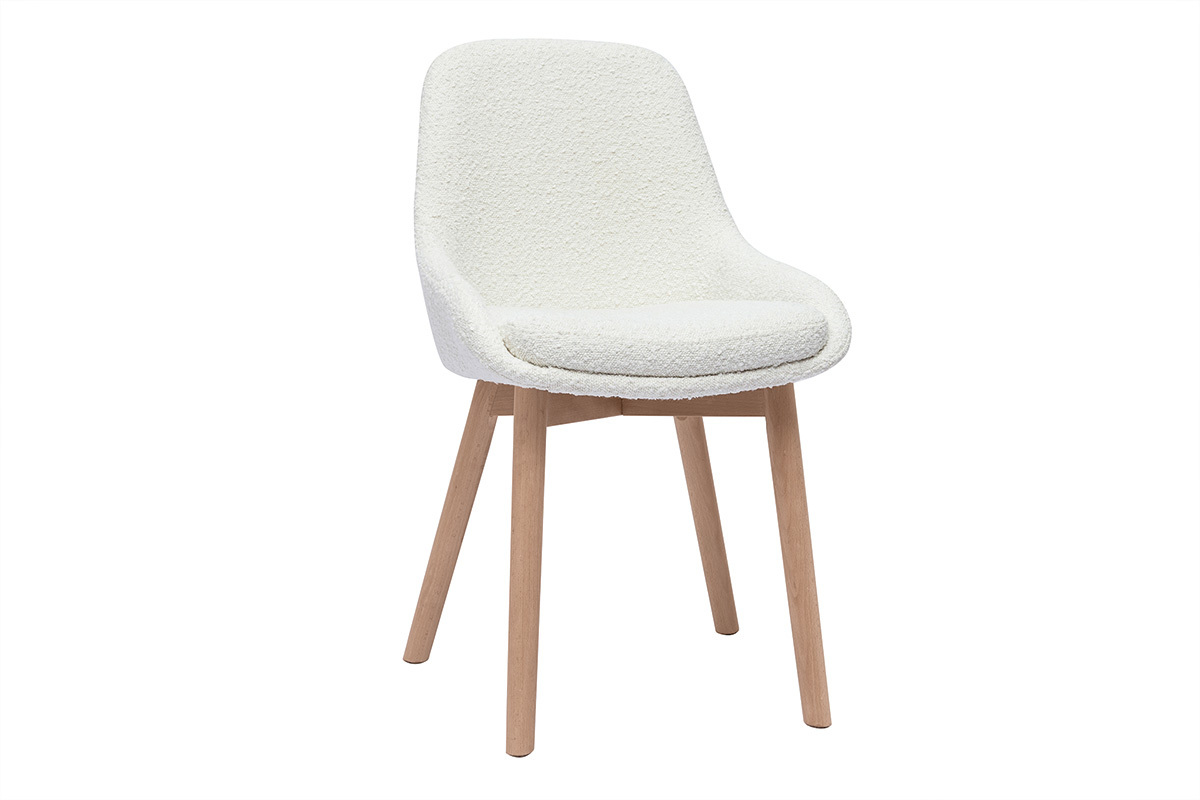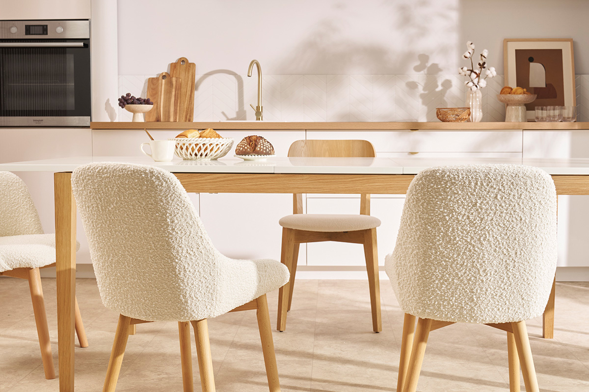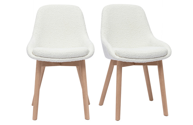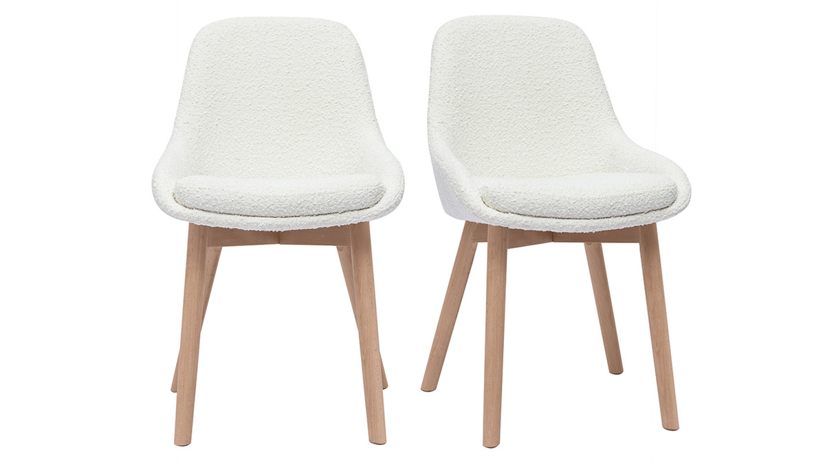 Entre design contemporain et authenticité, ces chaises en tissu effet laine bouclée blanc et piètement bois clair conjuguent avec style lignes épurées et authenticité. Pile dans la tendance nordique, les silhouettes intemporelles de ces chaises scandinaves camperont leur élégante simplicité dans une cuisine ou une salle à manger en quête de douceur et de fonctionnalité.