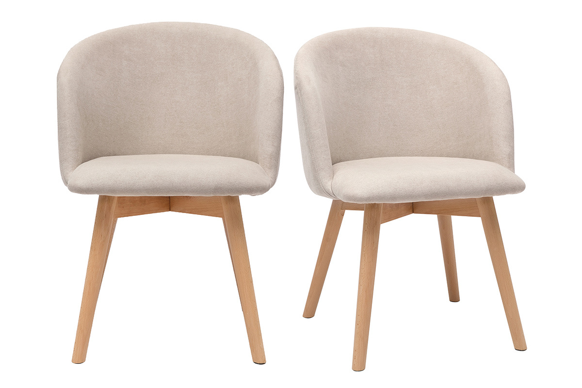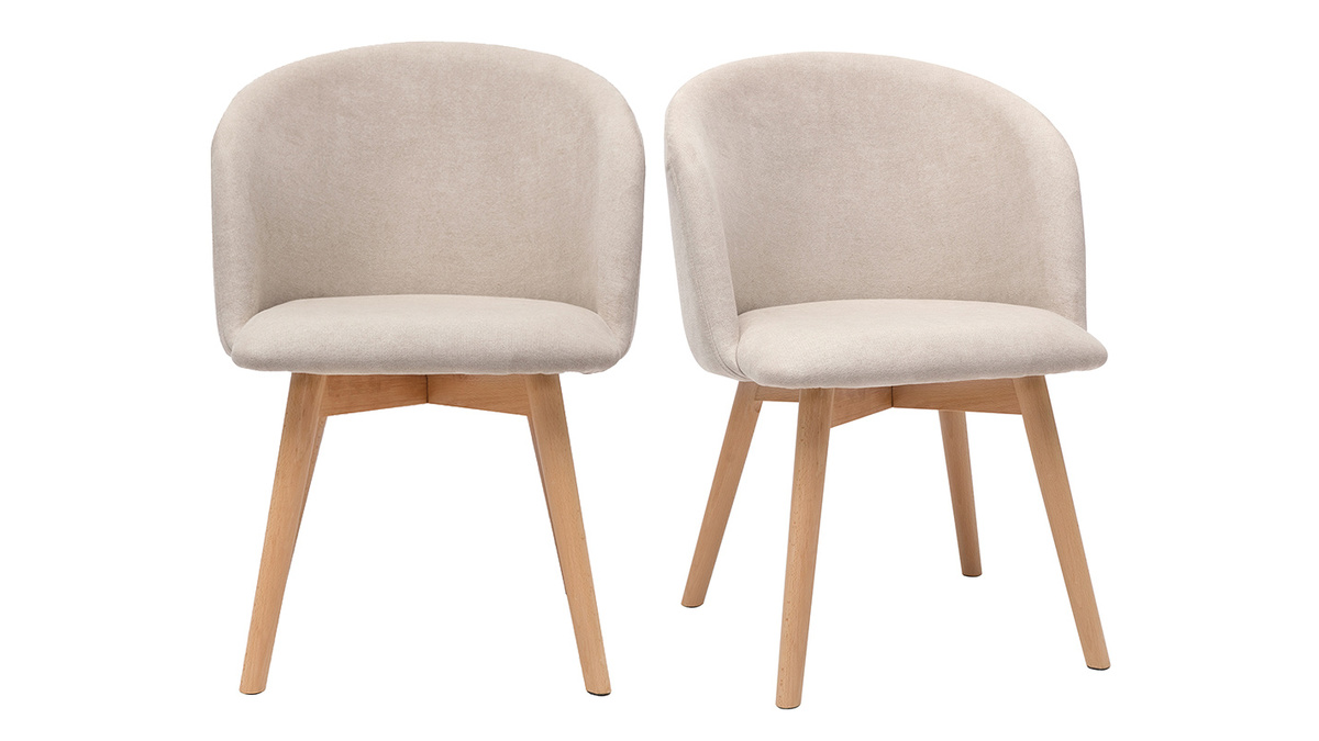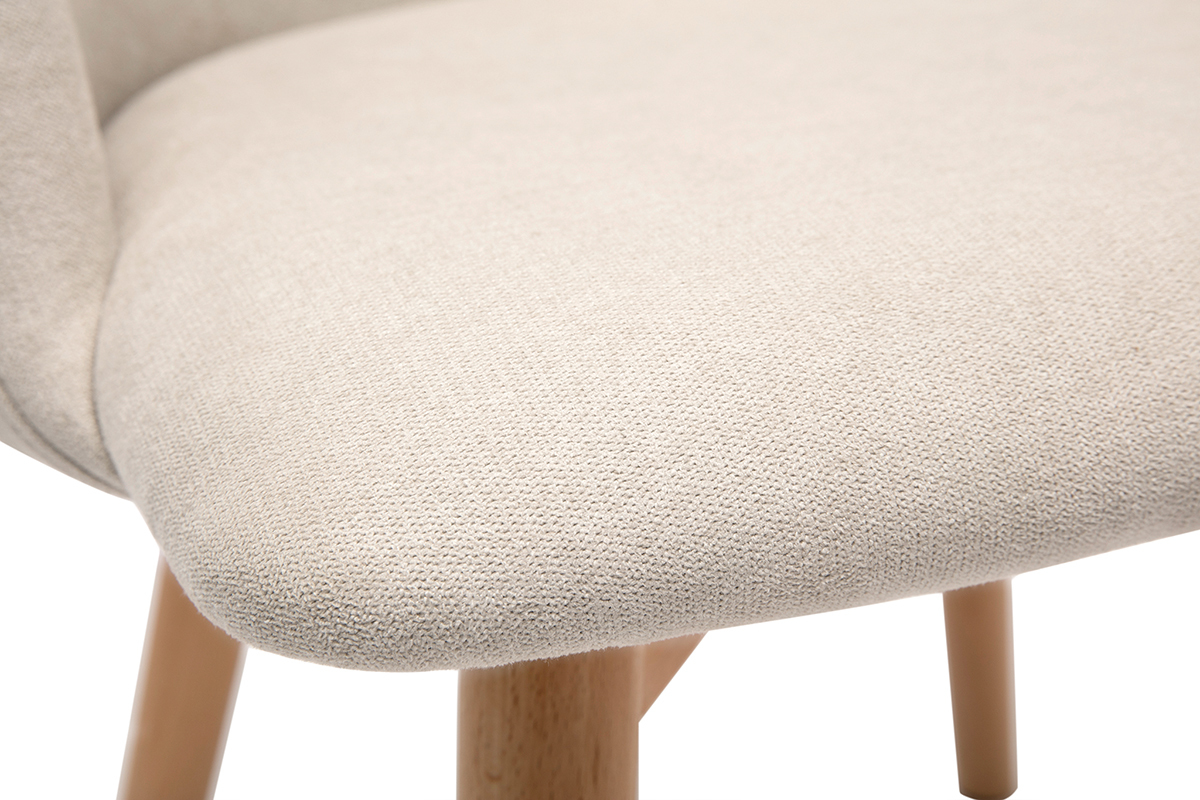 Avec leurs formes généreuses et leurs pieds en bois blond (hêtre massif), les chaises VANITY font écho à la tendance Hygge qui célèbre un art de vivre chaleureux et authentique. Leur revêtement effet velours de couleur beige nous transporte dans un monde de douceur. Leur dossier enveloppant (L56 x H39 cm) forme comme un rempart et leur assise moelleuse (densité de la mousse 25 kg/m3) est propice à de longues soirées de détente autour d'un bon repas.