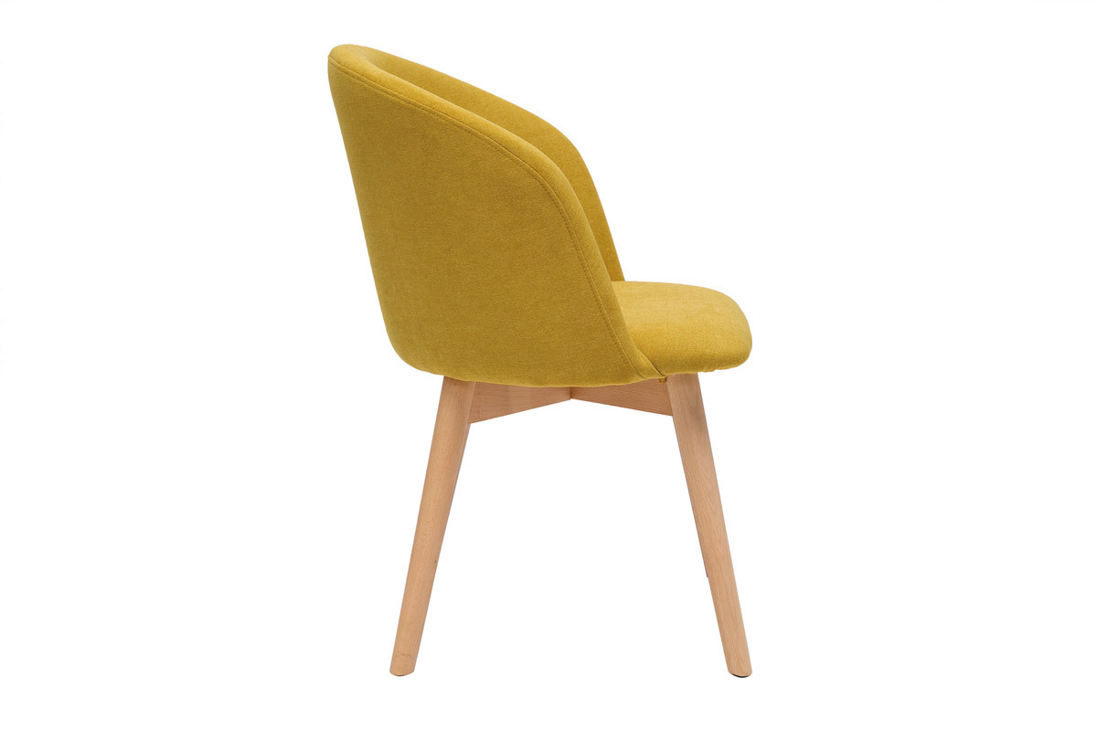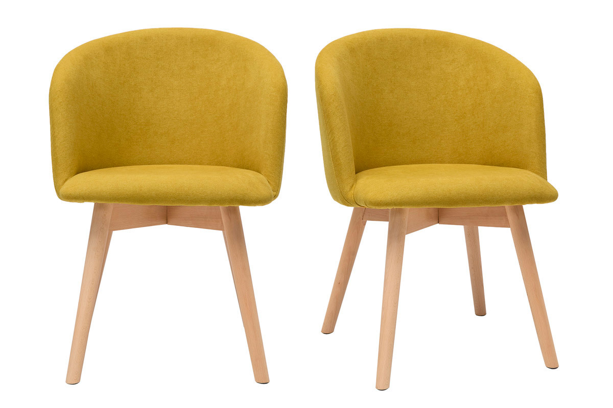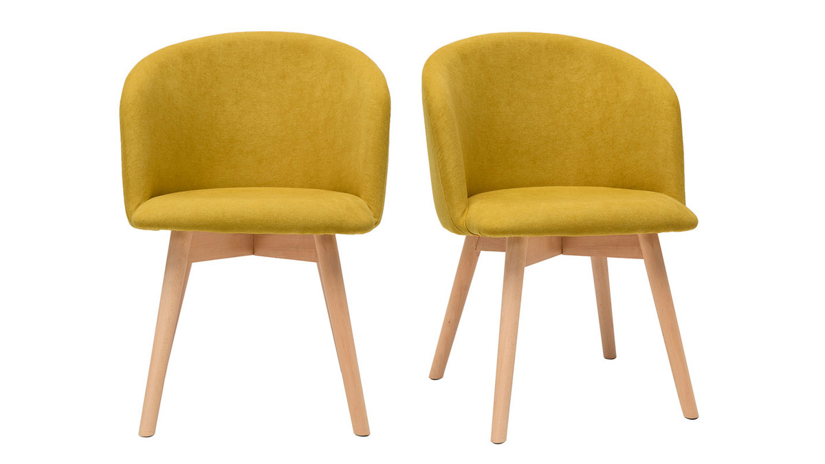 Avec leurs formes généreuses et leurs pieds en bois blond (hêtre massif), les chaises VANITY font écho à la tendance Hygge qui célèbre un art de vivre chaleureux et authentique. Leur revêtement effet velours de couleur jaune moutarde nous transporte dans un monde de douceur. Leur dossier enveloppant (L56 x H39 cm) forme comme un rempart et leur assise moelleuse (densité de la mousse 25 kg/m3) est propice à de longues soirées de détente autour d'un bon repas.