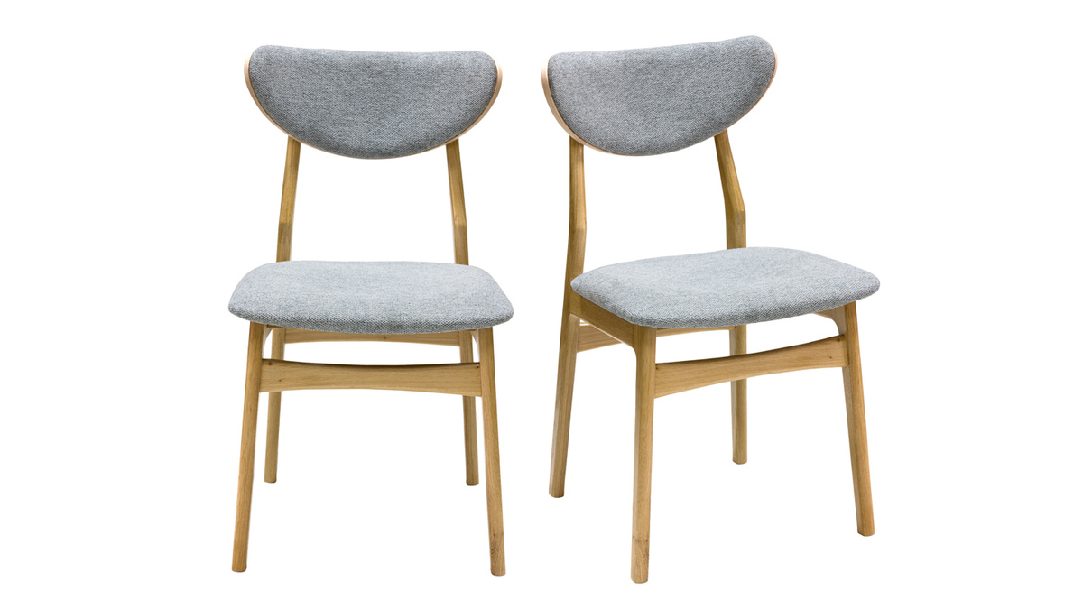 Brouillant les frontières entres style scandinave, vintage, et contemporain, ces chaises gris chiné et bois clair ont la capacité de se fondre en douceur au sein d'une pluralité d'ambiances.