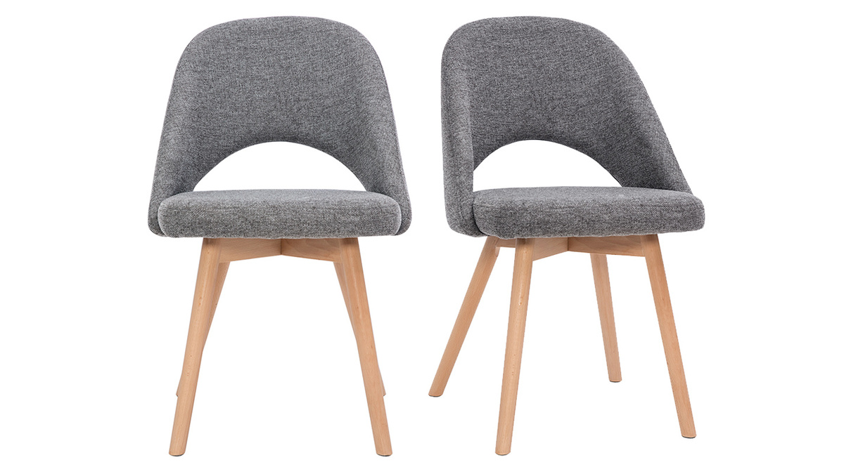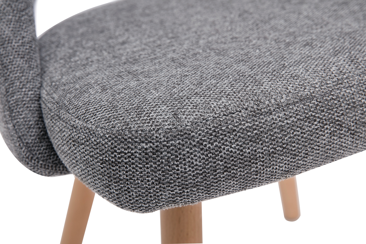 Les chaises COSETTE sont habillées d'un joli tissu effet velours texturé de couleur grise (100% polyester) qui répond parfaitement au piètement en hêtre massif. Associées à une table à manger en bois clair, ces chaises donneront le ton d'une atmosphère douce et chaleureuse.