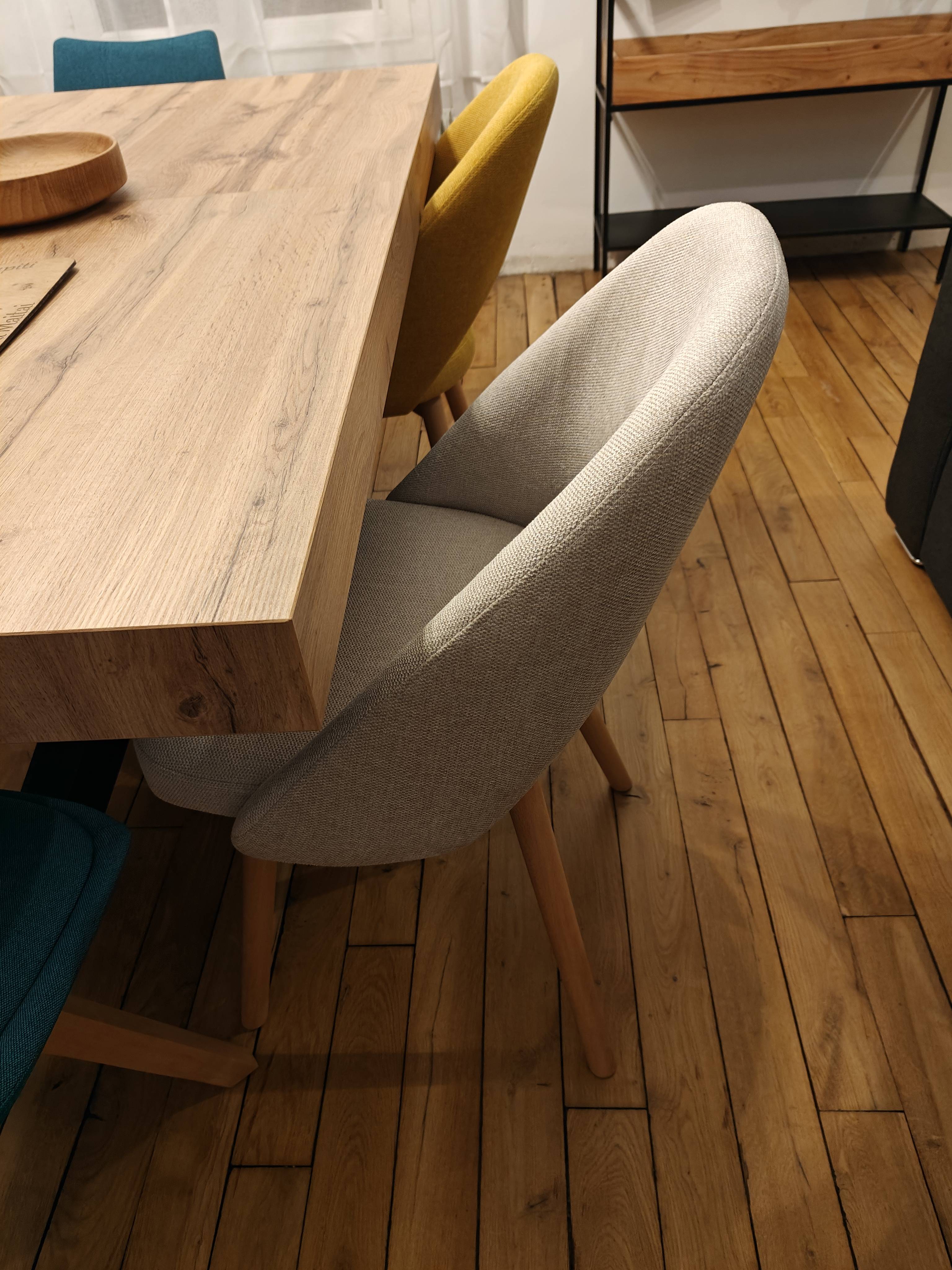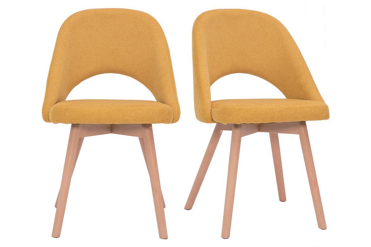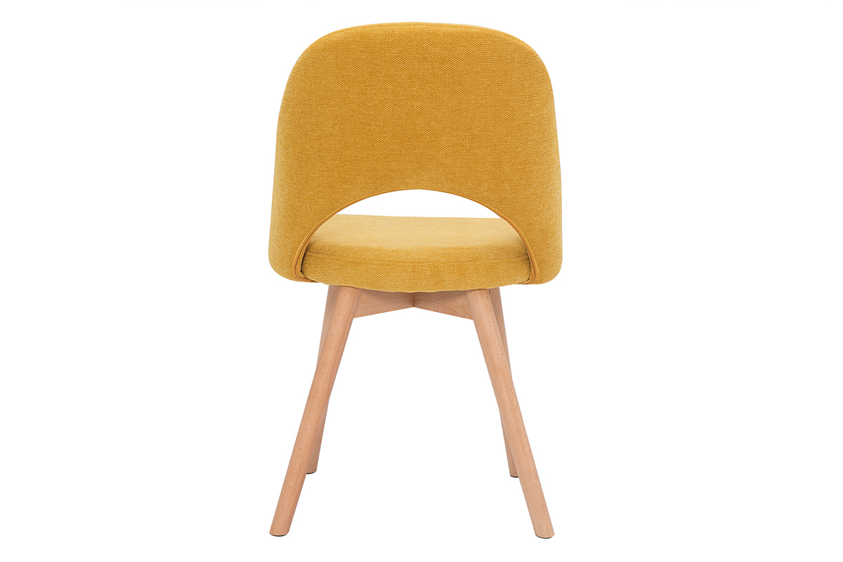 Ce modèle de chaises scandinaves sont habillées d'un joli tissu effet velours texturé de couleur jaune moutarde (100% polyester) qui répond parfaitement au piètement en hêtre massif. Associées à du meubles en bois clair, les chaises COSETTE donneront le ton d'une atmosphère douce et chaleureuse.