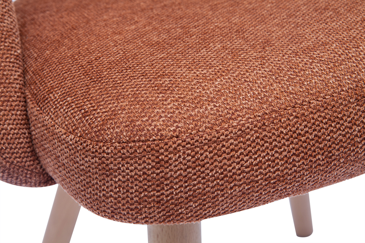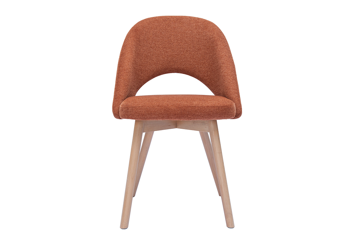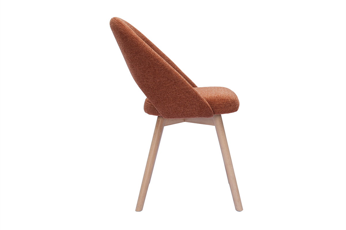 Les chaises COSETTE sont habillées d'un joli tissu effet velours texturé de couleur terre brûlée (100% polyester) qui répond parfaitement au piètement en hêtre massif. Associées à une table à manger en bois clair, ces chaises donneront le ton d'une atmosphère douce et chaleureuse.